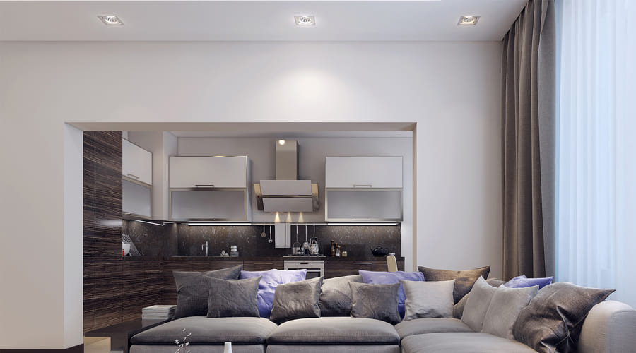 - равномерность освещения – при правильной схеме установки включённые светильники не оставляют в комнате непокрытых зон и затенённых участков;