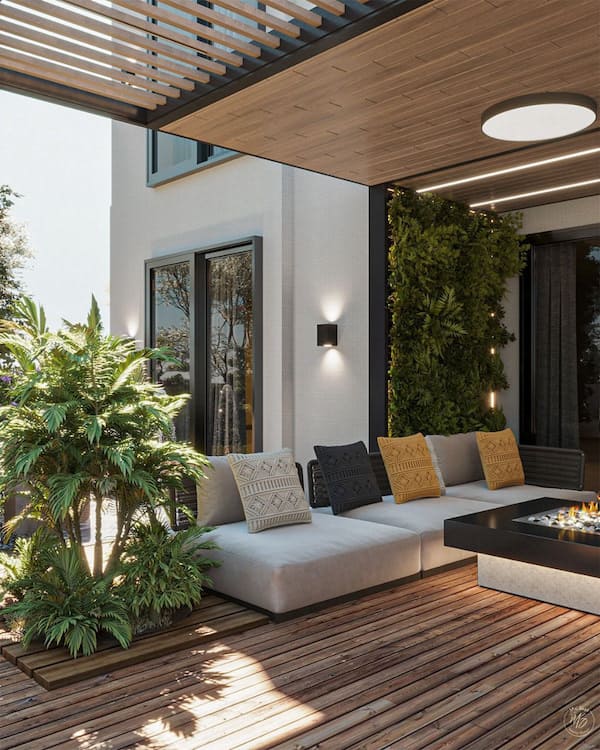 В гостиной используется больше экологически чистых материалов, таких как дерево с сертификатом FSC, экологически безопасные краски и отделочные материалы, а также переработанные и вторичные материалы. Кроме того, популярны растения и элементы природы, такие как вертикальные сады, декоративные растения и природные оттенки цветов.