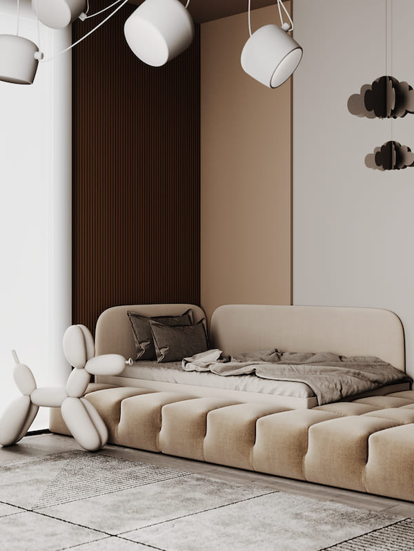 Геометрические формы и абстрактные узоры используются на мебели, обоях, коврах и других элементах декора, добавляя современности и стильности в интерьер. Они могут быть использованы как в настенных рисунках, так и в текстильных элементах, подушках, покрывалах.