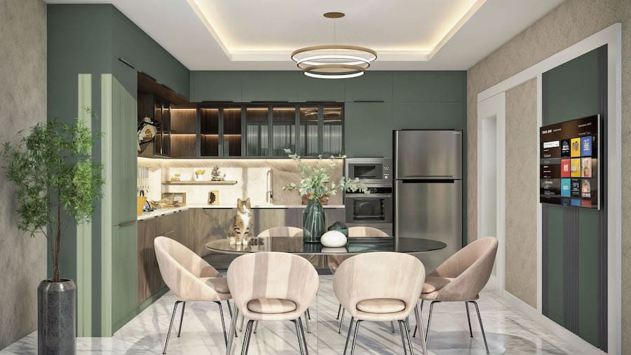 В тренде 2025 года – организация на кухне не просто места для приёма пищи, но и уютного пространства для общения. Если позволяет площадь, дополните обеденную зону небольшим диванчиком или создайте обеденный остров, где можно собираться всей семьёй не только во время еды.
