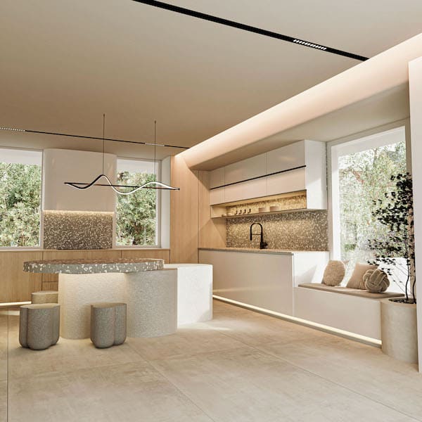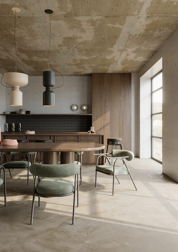 Ультра-минималистичные обеденные группы с острыми углами, выполненные в холодных белых тонах, уже не актуальны в 2025 году. Дизайн становится более тёплым и тактильным, поэтому даже минималистичная мебель должна иметь закруглённые края, приятные на ощупь поверхности и тёплые оттенки.