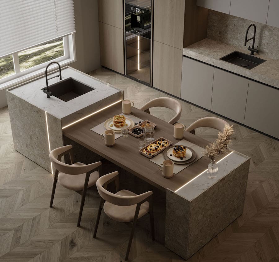 Гибкость становится ключевым фактором в дизайне кухонных столов 2025 года. Раскладные и модульные столы позволят вам адаптировать пространство к любой ситуации – от быстрого завтрака до большого семейного ужина.
