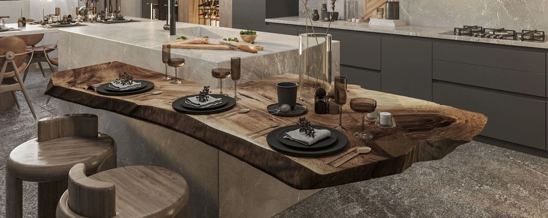 Природные материалы возвращаются в тренды 2025 года. Деревянные столы будут особенно популярны благодаря своей универсальности, теплоте и способности вписаться практически в любой интерьер. Текстура натурального дерева привносит уют даже в самый современный или брутальный интерьер.