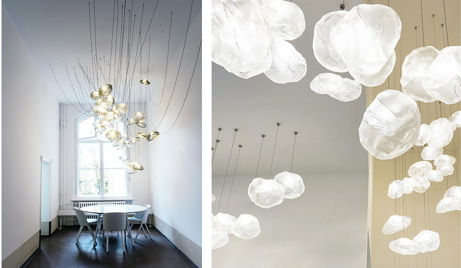 У каскадных светильников может быть два и более ярусов. Они могут располагаться параллельно, наслаиваться друг на друга, плавно перетекать от одного к другому и т.д.