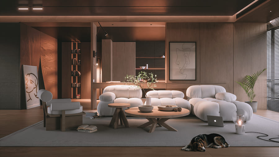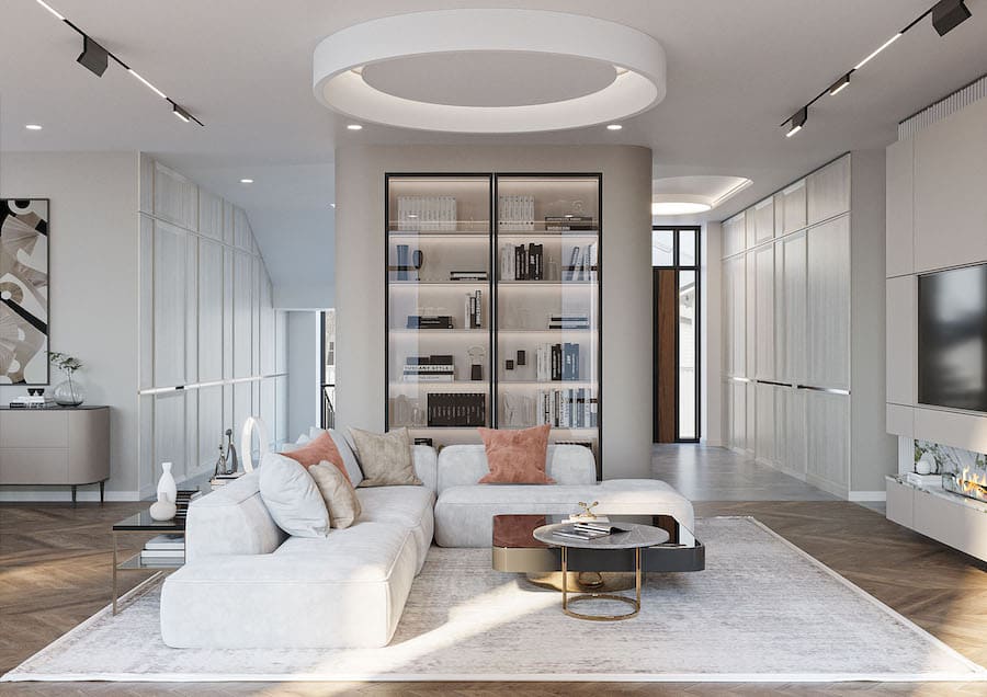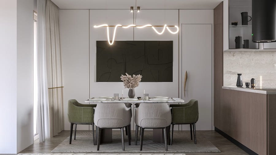 Рассеянный свет также играет важную роль в создании уютной атмосферы и визуальном расширении пространства. Используйте люстры с матовыми плафонами — они обеспечат мягкое, равномерное освещение без резких теней. Такой свет не только комфортен для глаз, но и помогает сгладить острые углы помещения, визуально делая его более просторным.