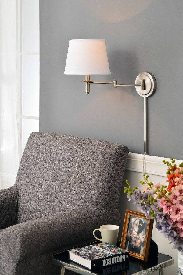 Настенные светильники делятся на стационарные и поворотные. Стационарные приборы крепятся к стене в одном положении, поворотные имеют гибкую основу и могут при необходимости изменять направление светового потока. Стационарные бра лучше устанавливать в зонах отдыха, поворотные – в рабочих зонах (у зеркал в ванной, над рабочей поверхностью в кухне).