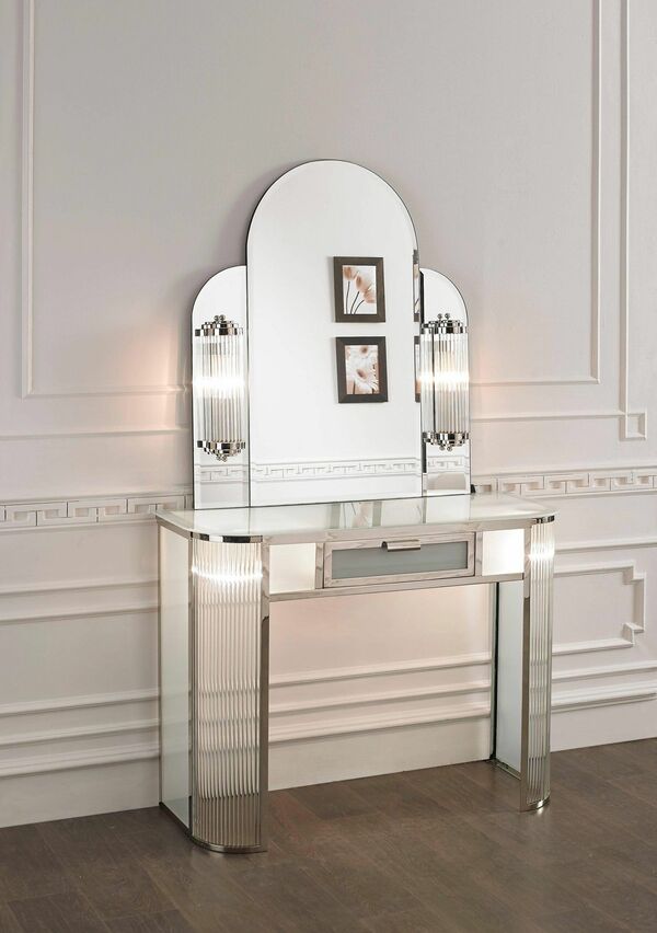 Если в комнате отдыха есть туалетный столик и зеркало, настенные светильники можно разместить около них. В этом случае тоже стоит купить пару приборов, чтобы они равномерно подсвечивали фигуру и лицо человека, иначе зеркало будет искажать изображение. Бра в спальню лучше подбирать поворотные, чтобы можно было точнее настраивать направление светового потока. Полезным дополнением будет также диммер, позволяющий регулировать интенсивность света.