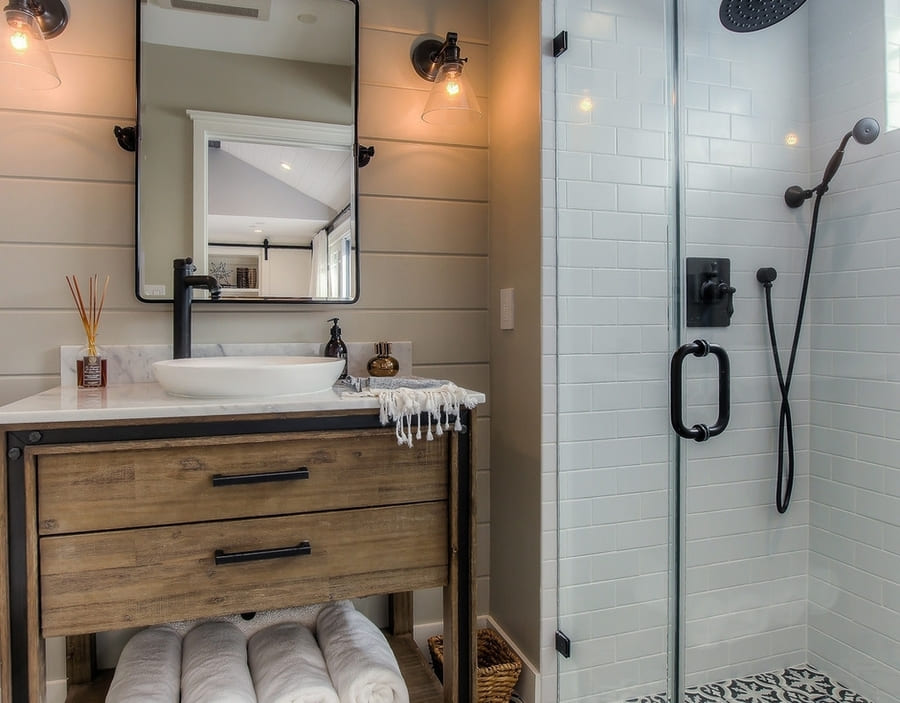 При выборе осветительных приборов в ванную комнату важно позаботиться и об их безопасности. Все светильники, используемые здесь, должны иметь повышенный уровень влагозащиты. Это показатель определяется индексом IP, его значение для помещений с высокой влажностью – не менее 44.