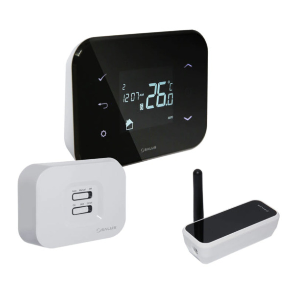 Второй блок мобильный, питается, как правило, от батареек. Он используется как пульт управления работой тёплых полов. Такой блок можно просто оставить в удобном для пользователей месте или повесить его на стену. Многие умные терморегуляторы способны синхронизироваться со смартфонами через специальные приложения, разработанные их производителями. Использование термостатов этого типа оправдано, например, в домах, где есть маленькие дети, от которых все время приходится прятать регулировочные механизмы.