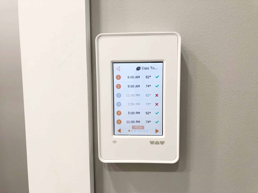 Главное преимущество таких термостатов – в возможности экономить электроэнергию за счёт индивидуального подбора настроек на периоды, когда в подогреве полов нет необходимости.