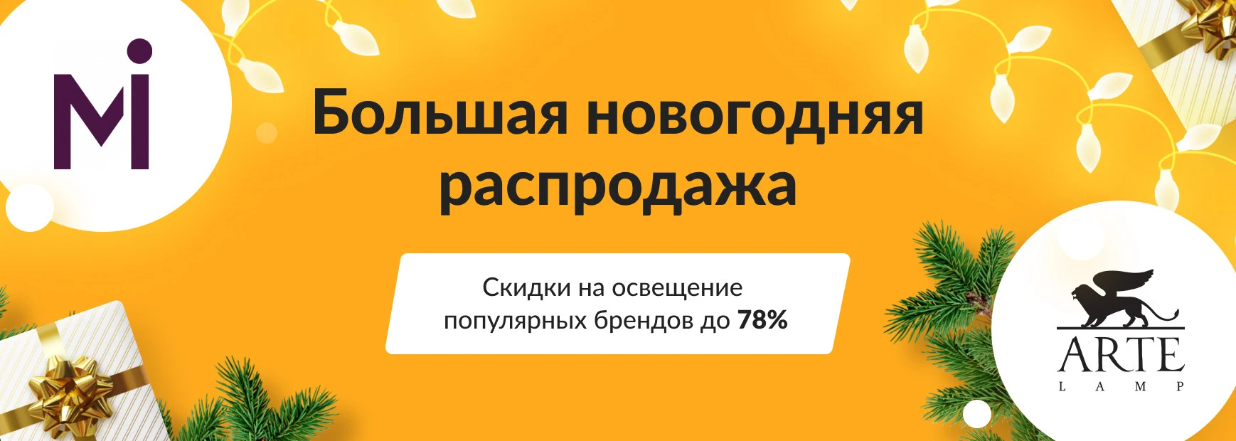 Новогодняя распродажа в самом разгаре, скидки на светильники - 78%. В акции участвуют около 3000 товаров от самых топовых брендов освещения. Обнови освещение к Новому году. Спеши, количество товара ограничено!