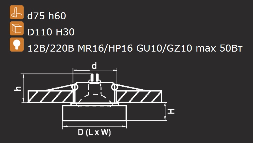 Точечный светильник встроенный 006117 из серии LEI от компании Lightstar удачно впишется в интерьер гостиной, кабинета, кухни, прихожей и коридора, спальни, оформленных в стиле модерн. Светильник имеет 1 плафон и 1 лампочку с цоколем GU5.3 с мощностью 50W, напряжением 12V. Модель поддерживает подключение диммера. Основной цвет и материал арматуры - черный металл, материал плафона - стекло. Лампочки в комплект не входят. Габариты модели: высота - 95 мм, диаметр - 110 мм. Лучшая цена и условия доставки на Lightstar 006117 в интернет-магазине Fedomo.ru.