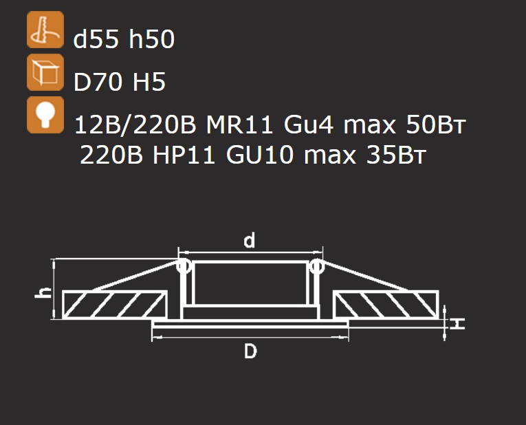 Точечный светильник встроенный 011054 из серии LEGA от компании Lightstar удачно впишется в интерьер экспозиции, гостиной, кухни, прихожей и коридора, спальни, оформленных в современном стиле. Светильник имеет 1 плафон и 1 лампочку с цоколем GU5.3 с мощностью 50W, напряжением 220V. Модель с направленным светом поддерживает подключение диммера. Основной цвет и материал арматуры - серый, металл цвета хрома. Лампочки в комплект не входят. Габариты модели: высота - 55 мм, диаметр - 70 мм. Лучшая цена и условия доставки на Lightstar 011054 в интернет-магазине Fedomo.ru.