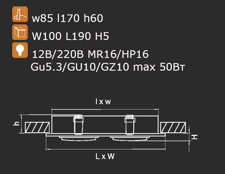Точечный светильник встроенный 011602 из серии SINGO от компании Lightstar удачно впишется в интерьер гостиной, кабинета, кафе, кухни, офиса, прихожей и коридора, спальни, оформленных в стиле модерн. Светильник имеет 1 плафон и 2 лампочки с цоколем GU5.3 с мощностью 50W, напряжением 220V. Модель с направленным светом поддерживает подключение диммера. Основной цвет и материал арматуры - серый, металл цвета хрома. Лампочки в комплект не входят. Габариты модели: длина - 190 мм, ширина - 100 мм, высота - 65 мм. Лучшая цена и условия доставки на Lightstar 011602 в интернет-магазине Fedomo.ru.