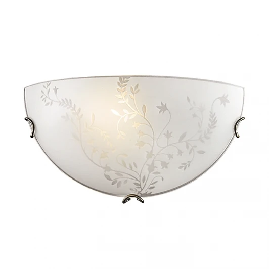 Материалы исполнения База - металл. Плафон - декорированное стекло. Цвет арматуры бронзовый. Плафон в цвете: белый. Особенность: полупрозрачный узор на плафоне. Декор орнамент на плафоне, материал декора краска, цвет белый. Наименование 018 SN 094 бра KUSTA стекло E27 1*100Вт 300х160.