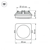 Встраиваемый квадратный светодиодный светильник LTD-80x80SOL-BK-5W Day White мощностью 5 Вт с белым цветом свечения (6000 К) и светящимся контуром для создания основного и декоративного освещения. Оригинальный дизайн корпуса с декоративной вставкой из акрила дополнит любой интерьер. Тонкий корпус светильника со степенью пылевлагозащиты IP44 и компактный драйвер, поставляемый в комплекте, позволяют встраивать светильник в натяжные и гипсокартонные потолки. У светильника 2 типа освещения: боковое с углом излучения 120° и основное с углом излучения 180°. Индекс цветопередачи CRI>80, световой поток 325 лм и матовый рассеиватель обеспечивают мягкий равномерный свет. Светильник легко устанавливается с помощью пружин в монтажное отверстие размером 65×65 мм и минимальной высотой 40 мм.