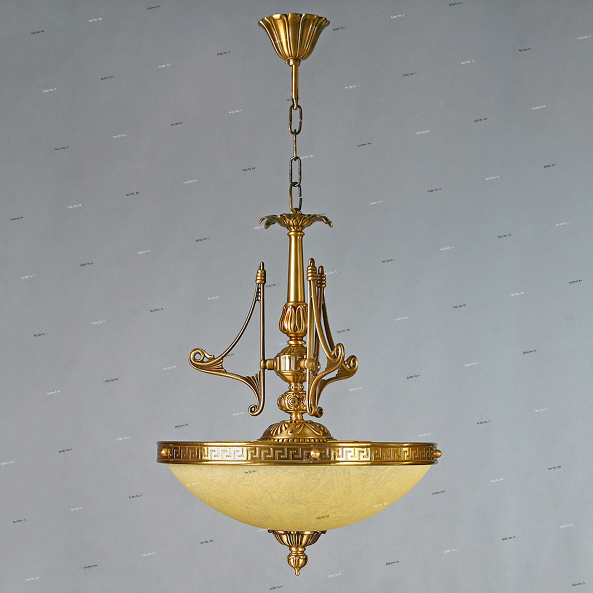 Конструкция подвесной люстры позволяет регулировать высоту изменением количества звеньев цепи.