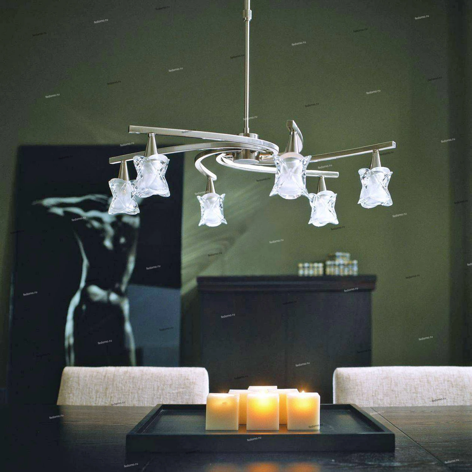 Люстра подвесная 0233 из серии Rosa от компании Mantra регулируется по высоте и устанавливается на монтажную пластину. Люстра прекрасно подойдет в качестве источника основного света для гостиной, прихожей и коридора, оформленных в стиле модерн, техно. Основной цвет модели - бронза, материал арматуры - металл. Люстра имеет 6 плафонов со свечением вниз, материал изготовления - стекло. Модель оснащена цоколем G9 (6xG9), имеет 6 лампочек с общей мощностью 240W и напряжением 220V. Светильник поддерживает подключение диммера. Габариты: высота - 630 мм, диаметр - 640 мм. Лампочки в комплект не входят. Лучшая цена и условия доставки на Mantra 0233 в интернет-магазине Fedomo.ru.