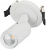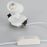 Встраиваемый поворотный светильник для потолка. Светодиод 5W, цвет ТЕПЛЫЙ БЕЛЫЙ 3000K, св.поток 350лм, угол 38°, RA>80. Корпус белый. Мощность 5Вт, питание AC180-240V. Размеры ØDxLxH 35x70x60мм. Установка в отверстие 60мм. Драйвер в комплекте (8-12V 400mA).
