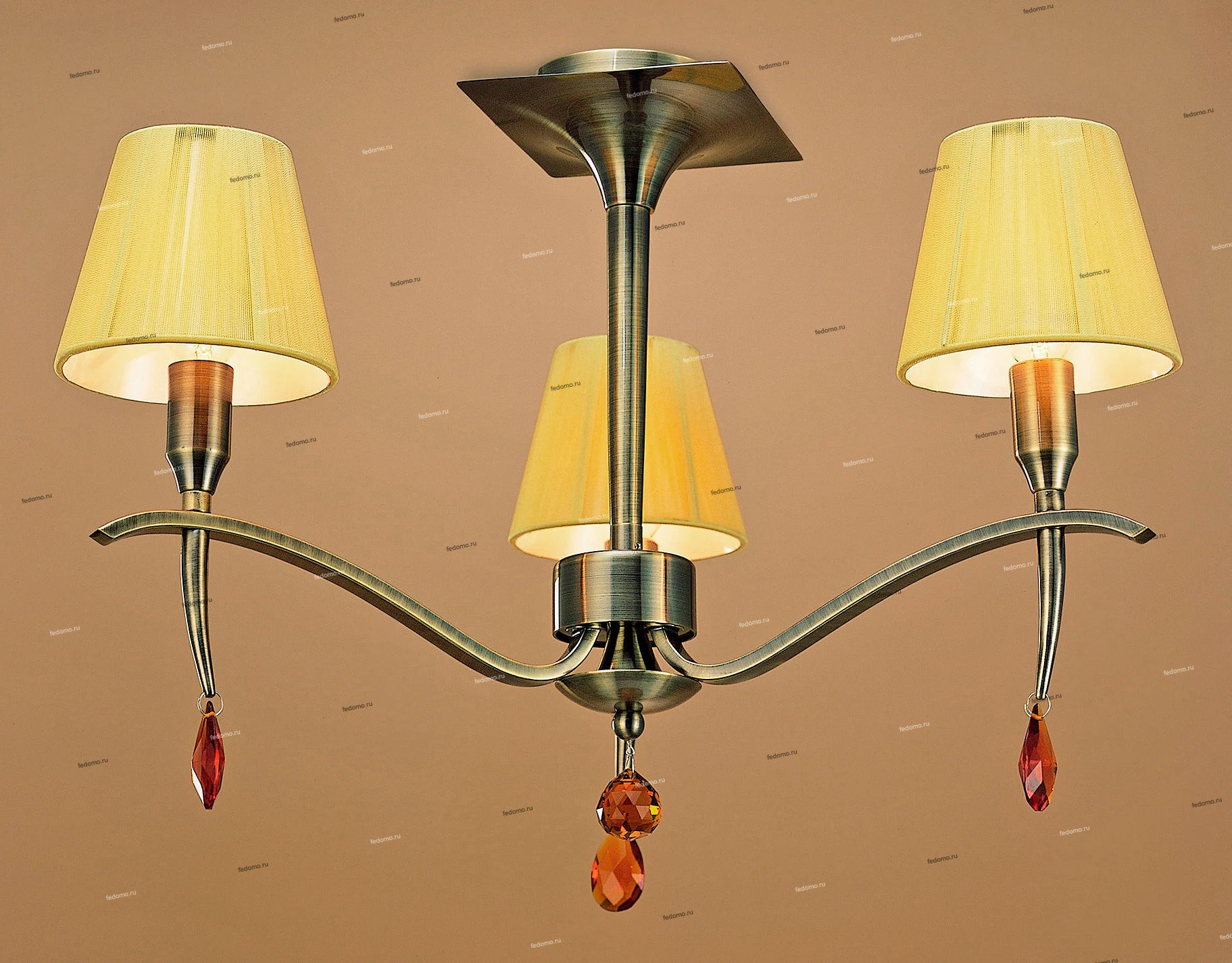 Люстра потолочная 0356 из серии Viena от компании Mantra устанавливается на монтажную пластину. Классическая люстра прекрасно подойдет в качестве источника основного света для гостиной, прихожей и коридора, оформленных в стиле арт-деко. Основной цвет модели - желтый, бронза, материал арматуры - металл. Люстра имеет 3 абажура со свечением вверх, материал изготовления - ткань. Модель оснащена цоколем E14 (3xE14), имеет 3 лампочки с общей мощностью 120W и напряжением 220V. Светильник поддерживает подключение диммера. Габариты: высота - 450 мм, диаметр - 530 мм. Лампочки в комплект не входят. Лучшая цена и условия доставки на Mantra 0356 в интернет-магазине Fedomo.ru.