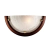 Материалы исполнения База - металл. Плафон - декорированное стекло. Цвет арматуры бронзовый. Плафон в цвете: коричневый. Особенность: центробежное стекло с рисунком. Декор рамка, материал декора дерево, цвет коричневый. Наименование 036 SN 101 бра LUFE WOOD стекло E27 1*100Вт 360х180.