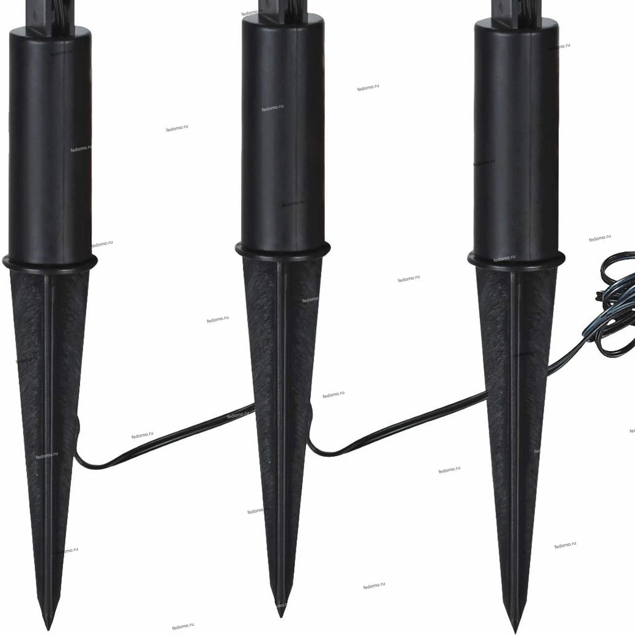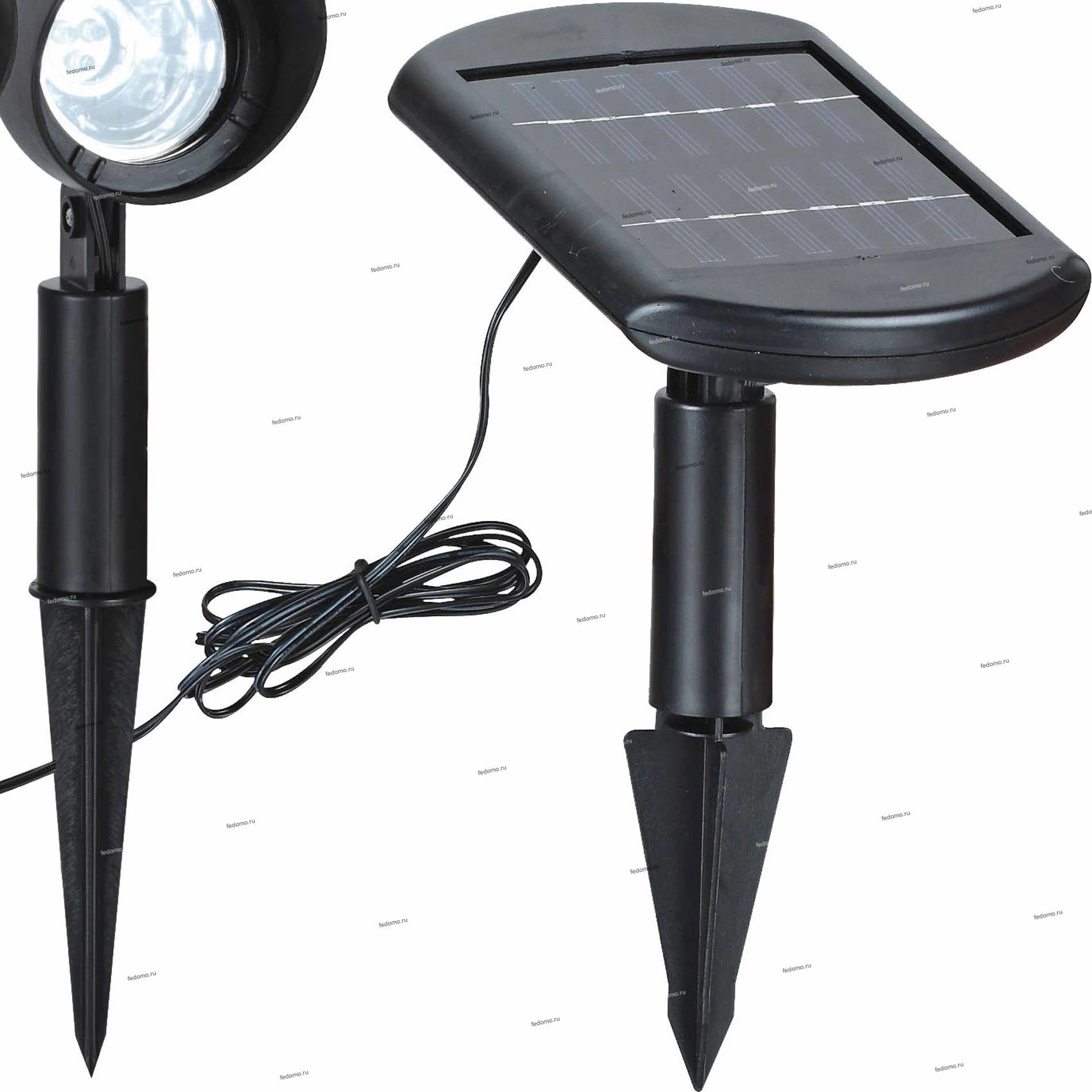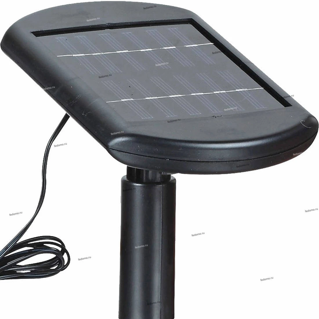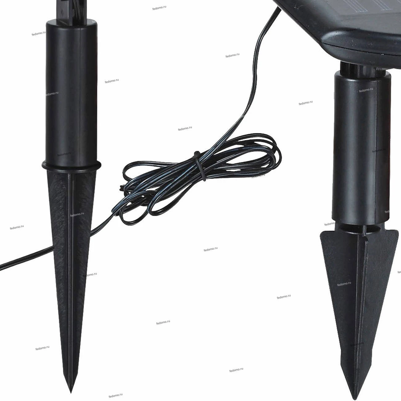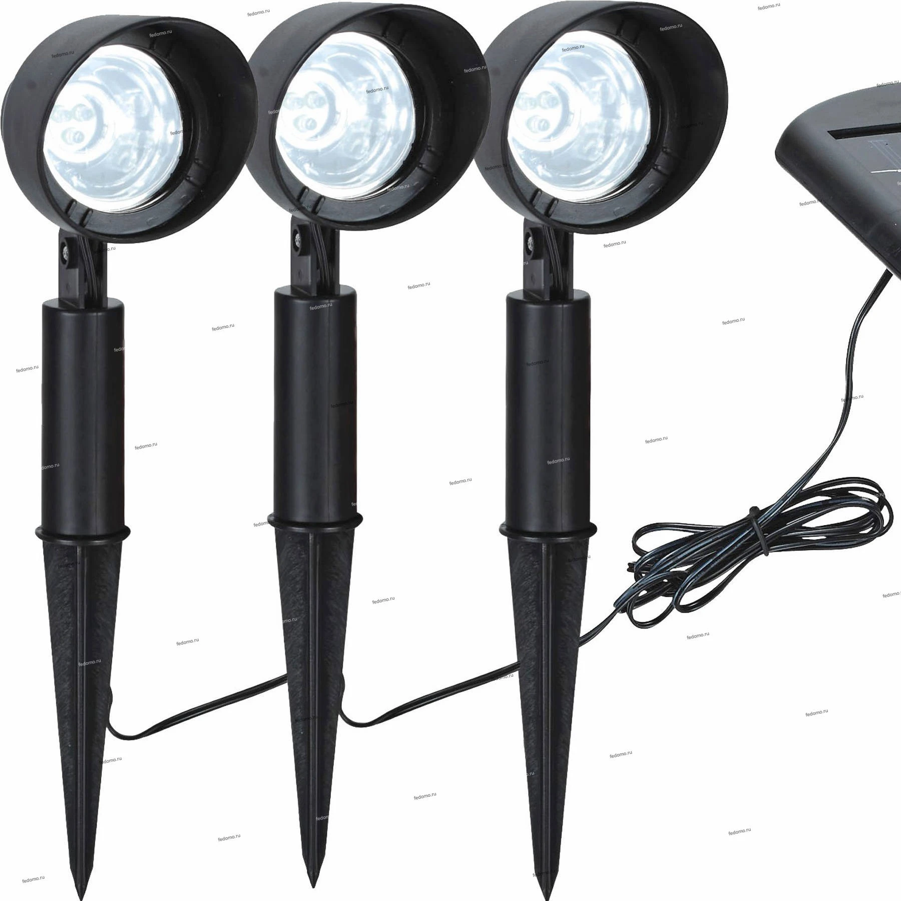 Светильник оснащен аккумуляторами 1.2V AA 100mAh Ni-MH (3 шт.), которые заряжаются от солнечной энергии. Каждый прожектор имеет кабель длиной 1,8 метра. Размер панели солнечной батареи 254 х 138 мм