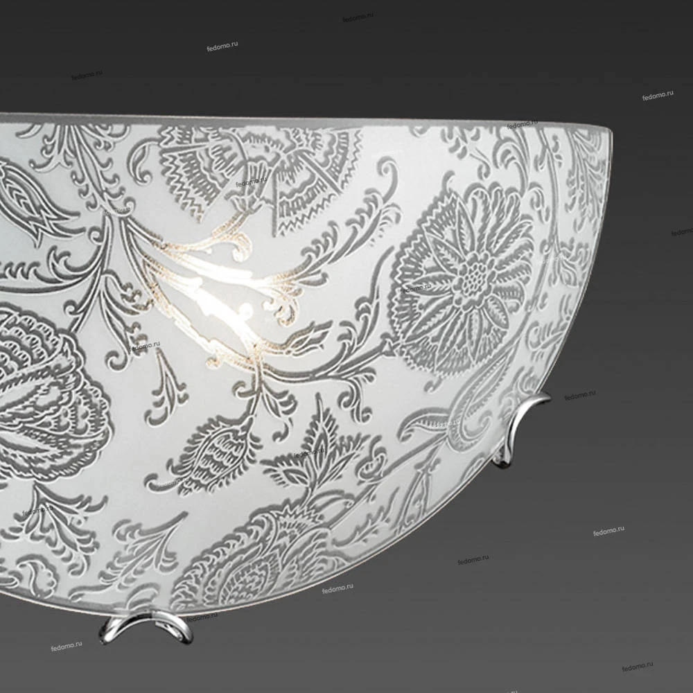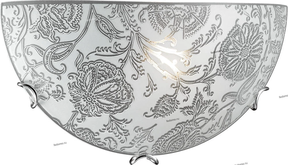 Материалы исполнения База - металл. Плафон - декорированное стекло. Цвет арматуры хром. Плафон в цвете: белый. Особенность: техника двустороннего окрашивания стекла. Декор орнамент на плафоне с эффектом ажурности, материал декора краска, цвет белый. Наименование 079 SN 093 бра VERITA стекло E27 1*100Вт 300х160.