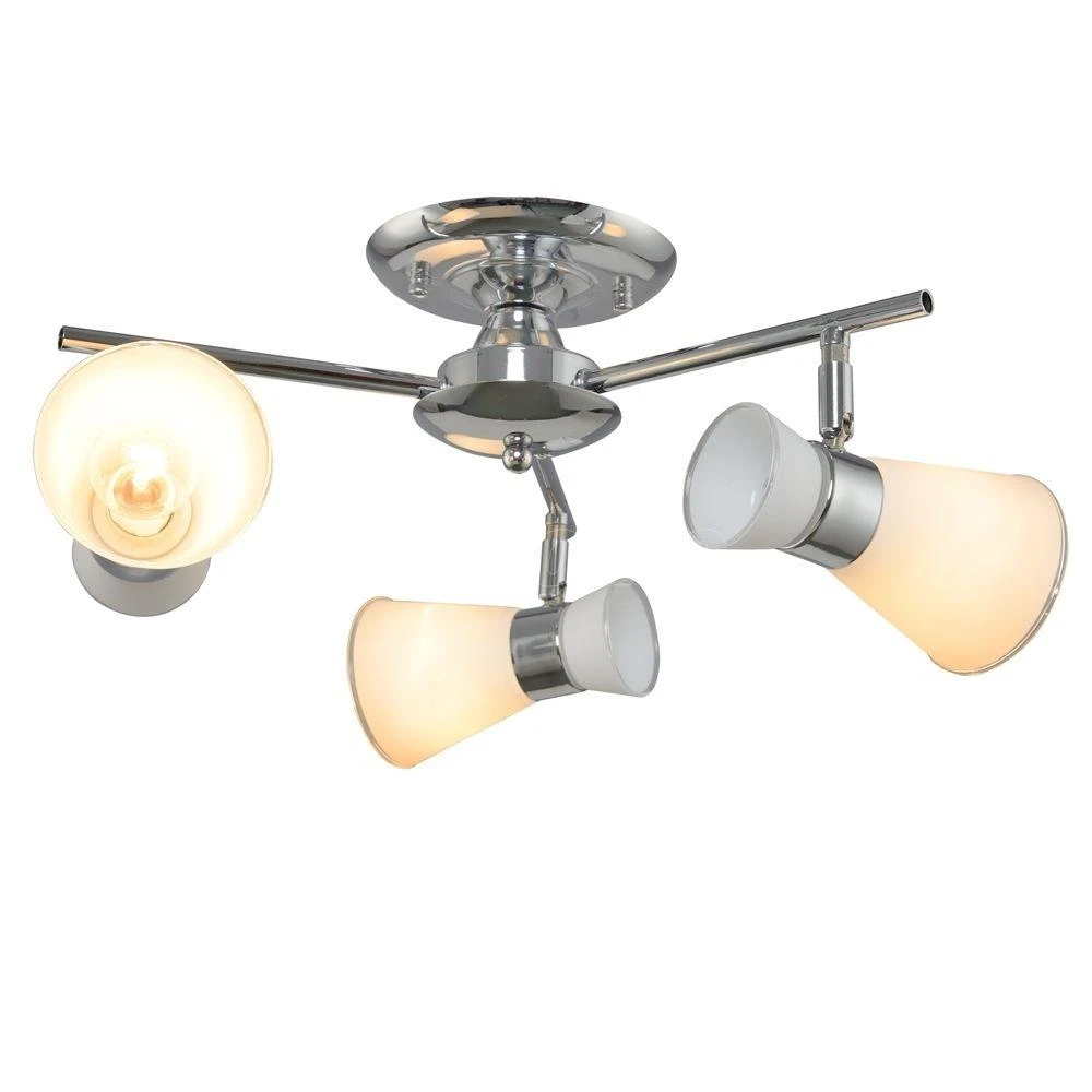 Люстра потолочная 1-8797-3-CR E14 из серии Универсал от компании Максисвет устанавливается на монтажную пластину. Современная люстра прекрасно подойдет в качестве источника основного света для гостиной, прихожей и коридора, спальни, кухни, оформленных в стиле модерн. Основной цвет модели - хром, материал арматуры - металл. Люстра имеет 3 плафона с направленным вверх и вниз светом, материал изготовления - матовое стекло. Модель оснащена цоколем E14 (3xE14), имеет 3 лампочки с общей мощностью 120W и напряжением 220V. Светильник поддерживает подключение диммера. Габариты: длина - 550 мм, ширина - 550 мм, высота - 240 мм. Лампочки в комплект не входят. Лучшая цена и условия доставки на Максисвет 1-8797-3-CR E14 в интернет-магазине Fedomo.ru.