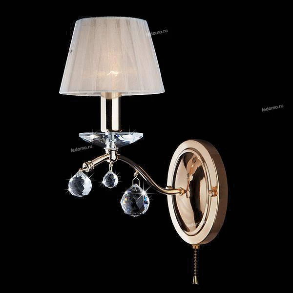 Бра 10058/1 золото/прозрачный хрусталь Strotskis из серии Эстель от компании Eurosvet украшено хрусталем и отлично подойдет в качестве дополнительного источника света для гостиной, прихожей и коридора, спальни, дачи, выполненных в стиле классический, арт-деко, прованс. Основной цвет модели - белый, материал арматуры - металл. Однорожковое бра имеет 1 лампочку, оснащено цоколем E14 с общей мощностью 40W и напряжением 220V. Абажур направлен вверх, материал изготовления - матовая ткань. Светильник поддерживает подключение диммера. Бра оборудовано выключателем на веревочке и устанавливается на монтажную пластину. Лампочки в комплект не входят. Срок службы модели составит не менее 70000 часов. Лучшая цена и условия доставки на Eurosvet 10058/1 золото/прозрачный хрусталь Strotskis в интернет-магазине Fedomo.ru.