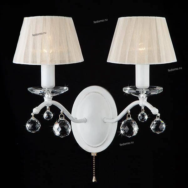 Бра 10058/2 белый с золотом/прозрачный хрусталь Strotskis из серии Эстель от компании Eurosvet украшено хрусталем и отлично подойдет в качестве дополнительного источника света для гостиной, прихожей и коридора, спальни, дачи, выполненных в стиле классический, арт-деко, прованс. Основной цвет модели - белый, материал арматуры - металл. Двухрожковое бра имеет 2 лампочки, оснащено цоколем E14 с общей мощностью 80W и напряжением 220V. Абажуры направлены вверх, материал изготовления - матовая ткань. Светильник поддерживает подключение диммера. Бра оборудовано выключателем на веревочке и устанавливается на монтажную пластину. Лампочки в комплект не входят. Срок службы модели составит не менее 70000 часов. Лучшая цена и условия доставки на Eurosvet 10058/2 белый с золотом/прозрачный хрусталь Strotskis в интернет-магазине Fedomo.ru.