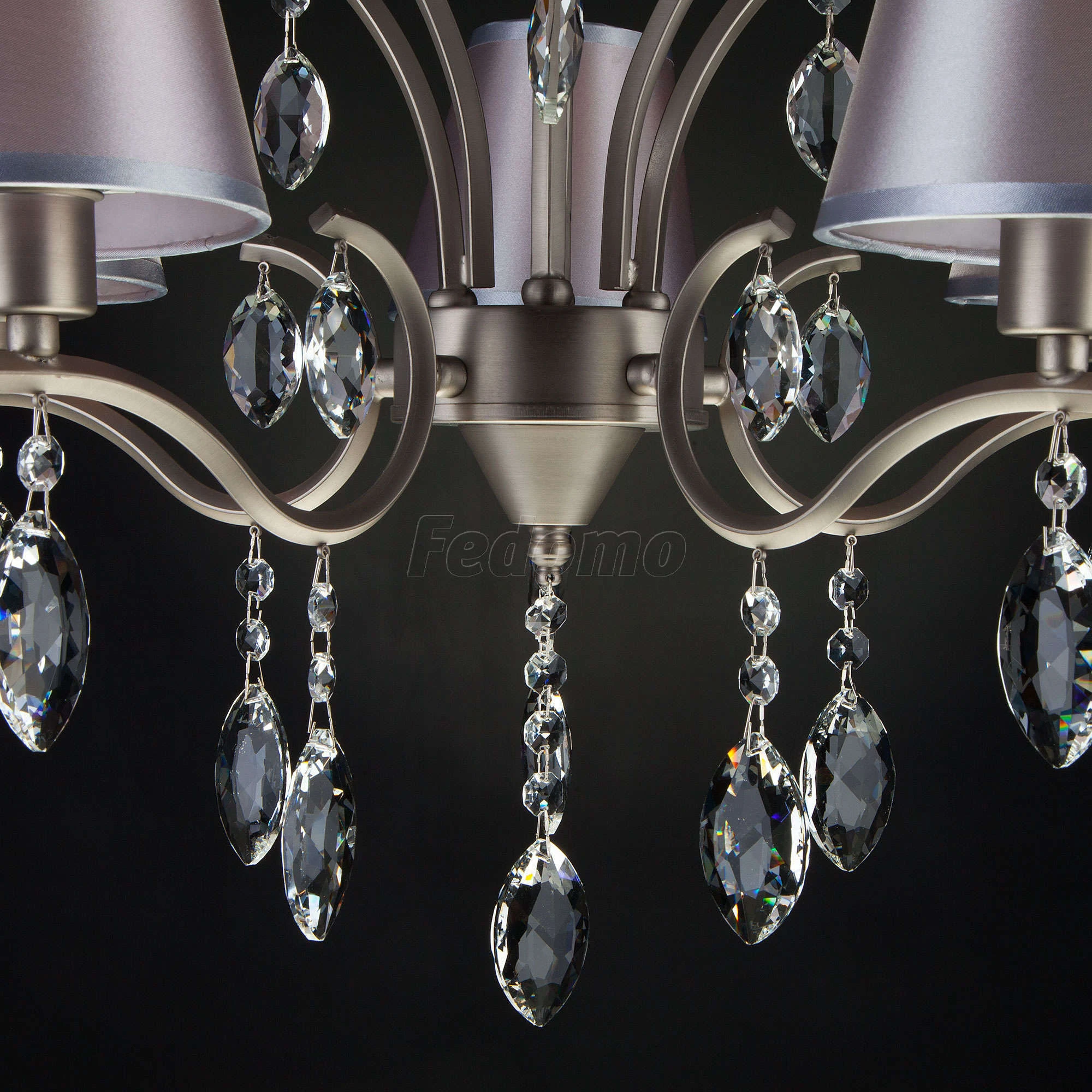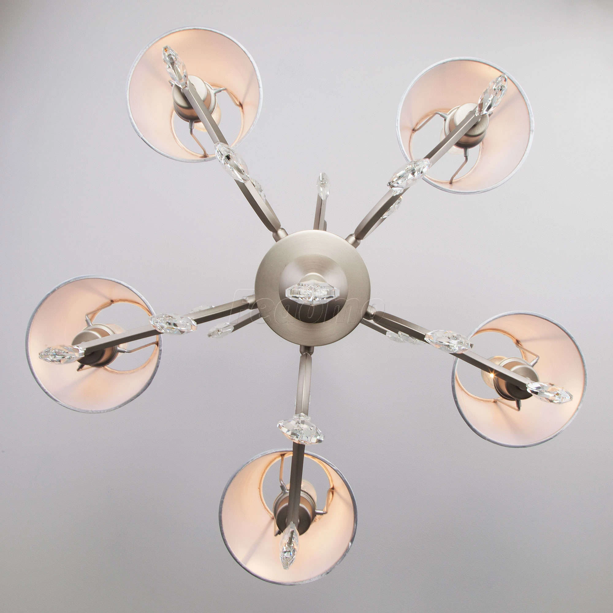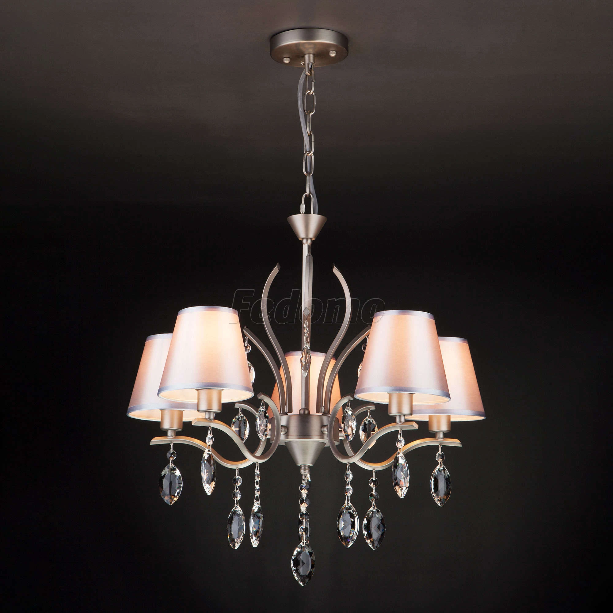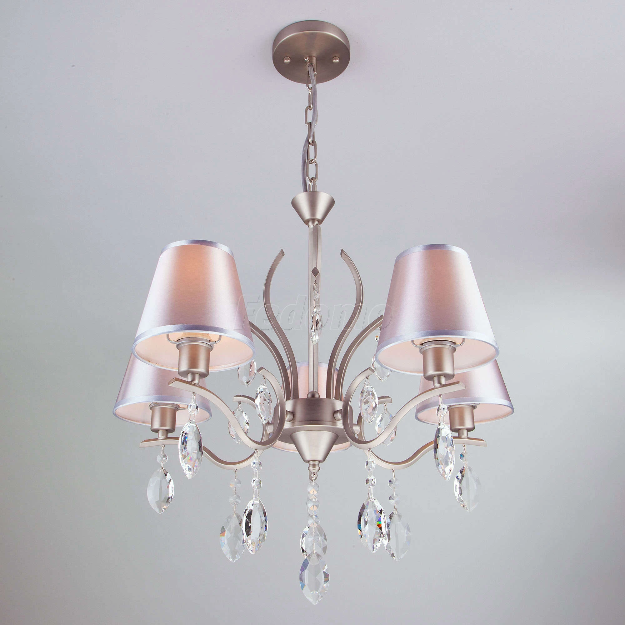Люстра подвесная 10089/5 сатин-никель/прозрачный хрусталь Strotskis из серии Aurelia от компании Eurosvet регулируется по высоте и устанавливается на монтажную пластину. Классическая люстра украшена хрусталем и прекрасно подойдет в качестве источника основного света для гостиной, спальни, кухни, кабинета, оформленных в стиле арт-деко. Основной цвет модели - серый, материал арматуры - металл. Люстра имеет 5 абажуров со свечением вверх, материал изготовления - матовая ткань. Модель оснащена цоколем E14 (5xE14), имеет 5 лампочек с общей мощностью 200W и напряжением 230V. Светильник поддерживает подключение диммера. Габариты: длина - 550 мм, ширина - 550 мм. Лампочки в комплект не входят. Лучшая цена и условия доставки на Eurosvet 10089/5 сатин-никель/прозрачный хрусталь Strotskis в интернет-магазине Fedomo.ru.