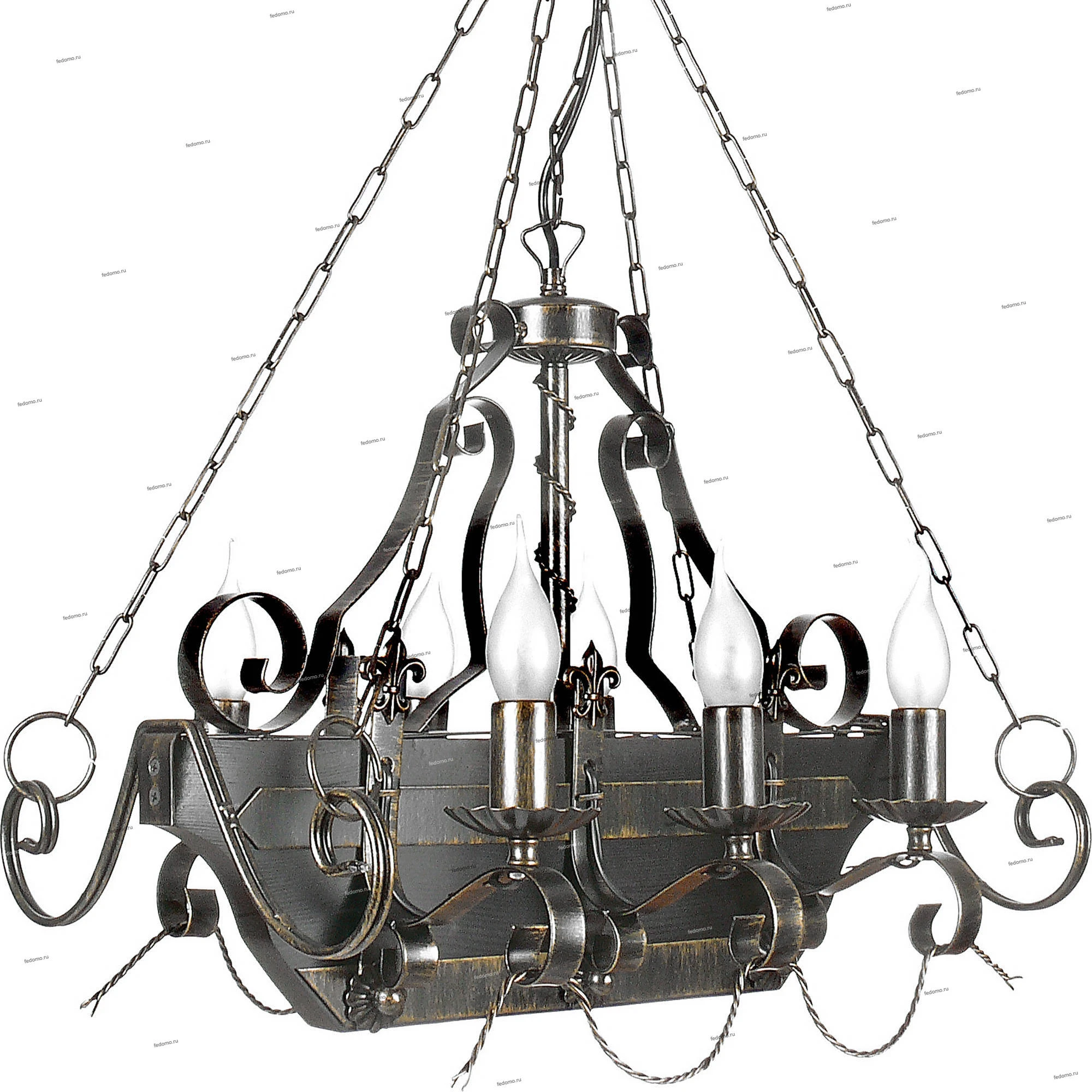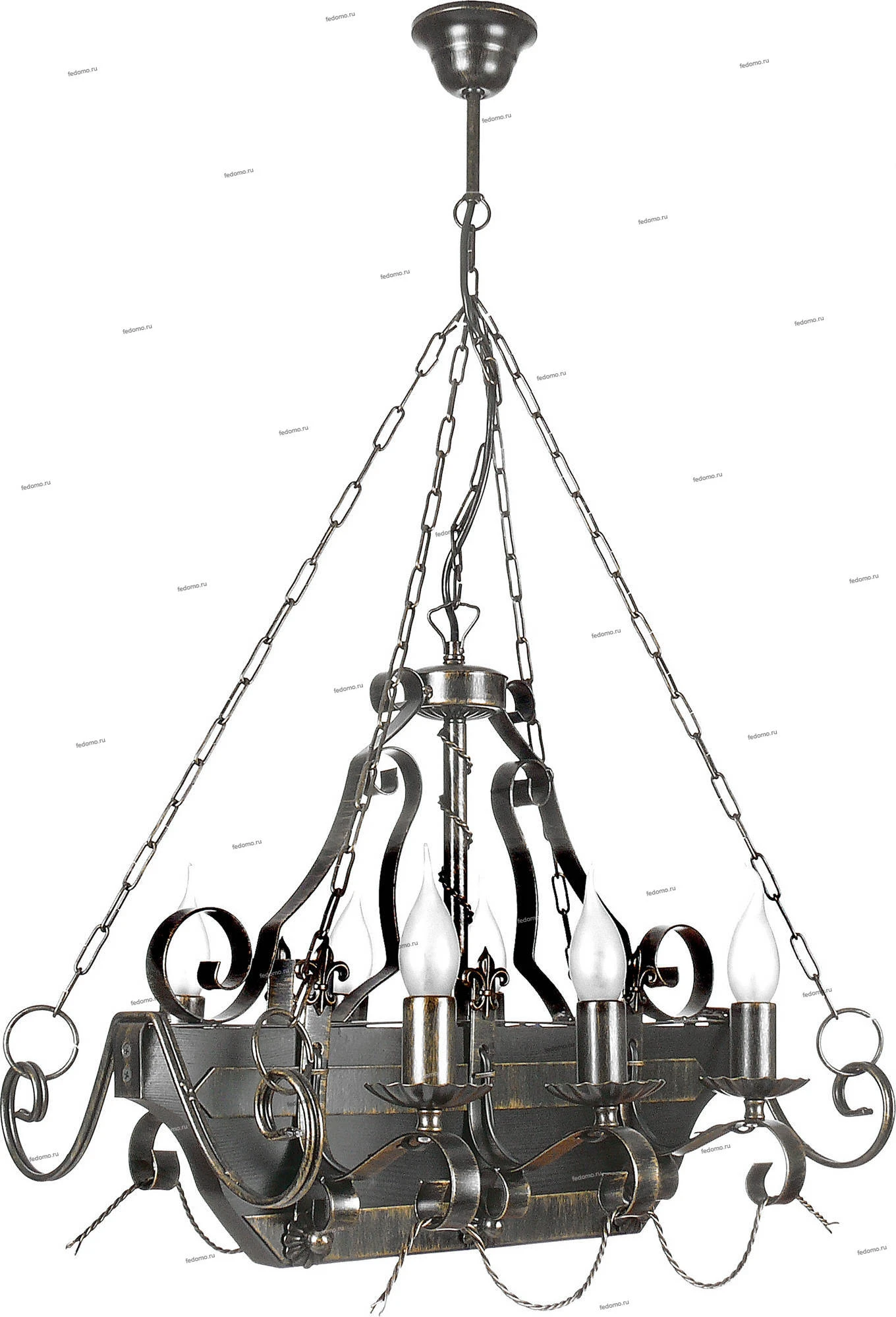 Конструкция подвесной люстры позволяет регулировать высоту изменением количества звеньев цепи.