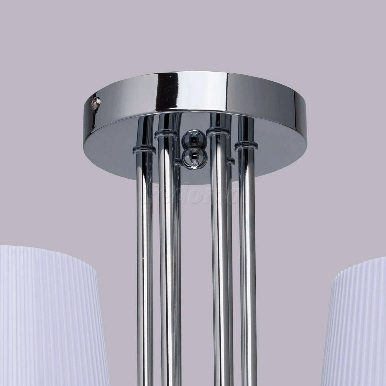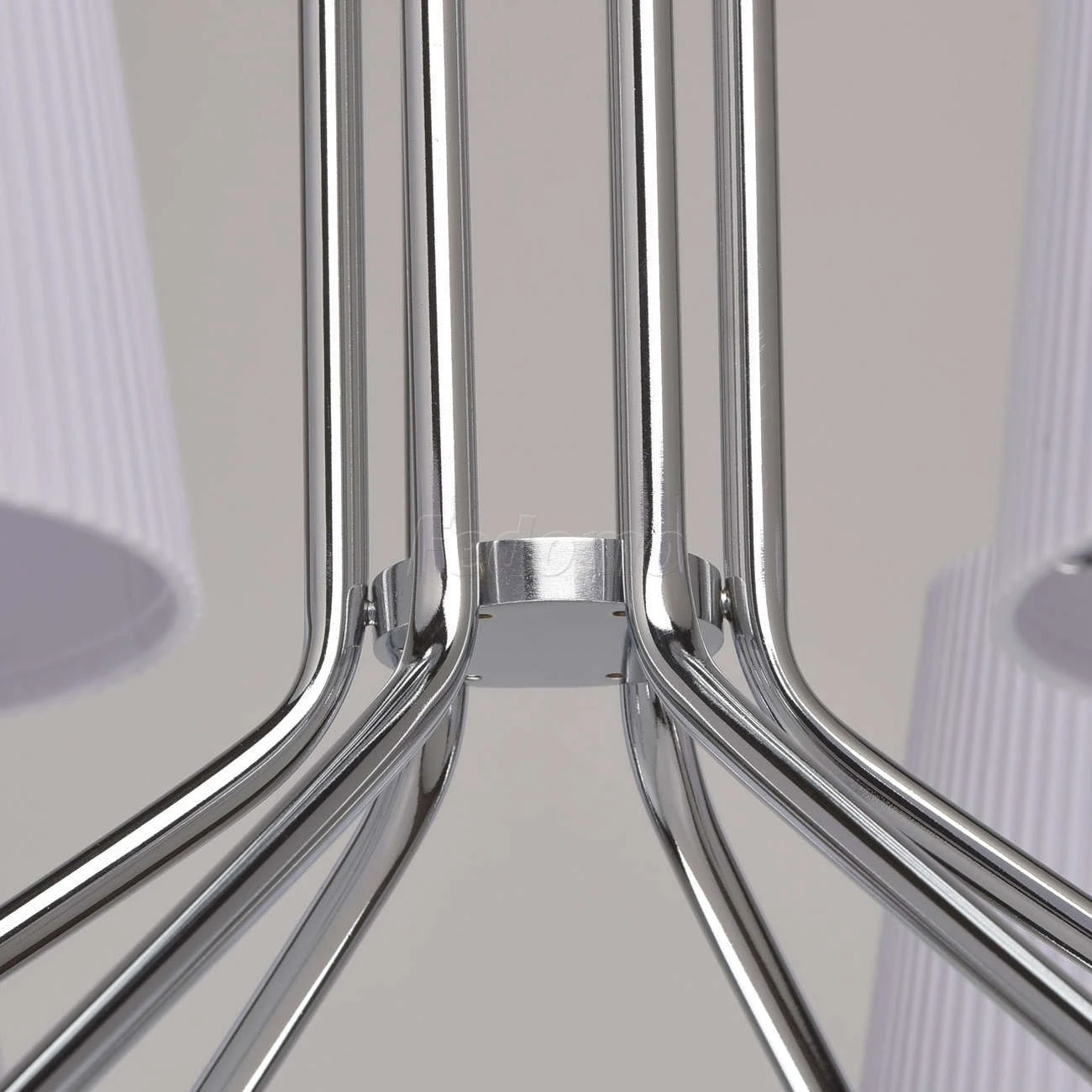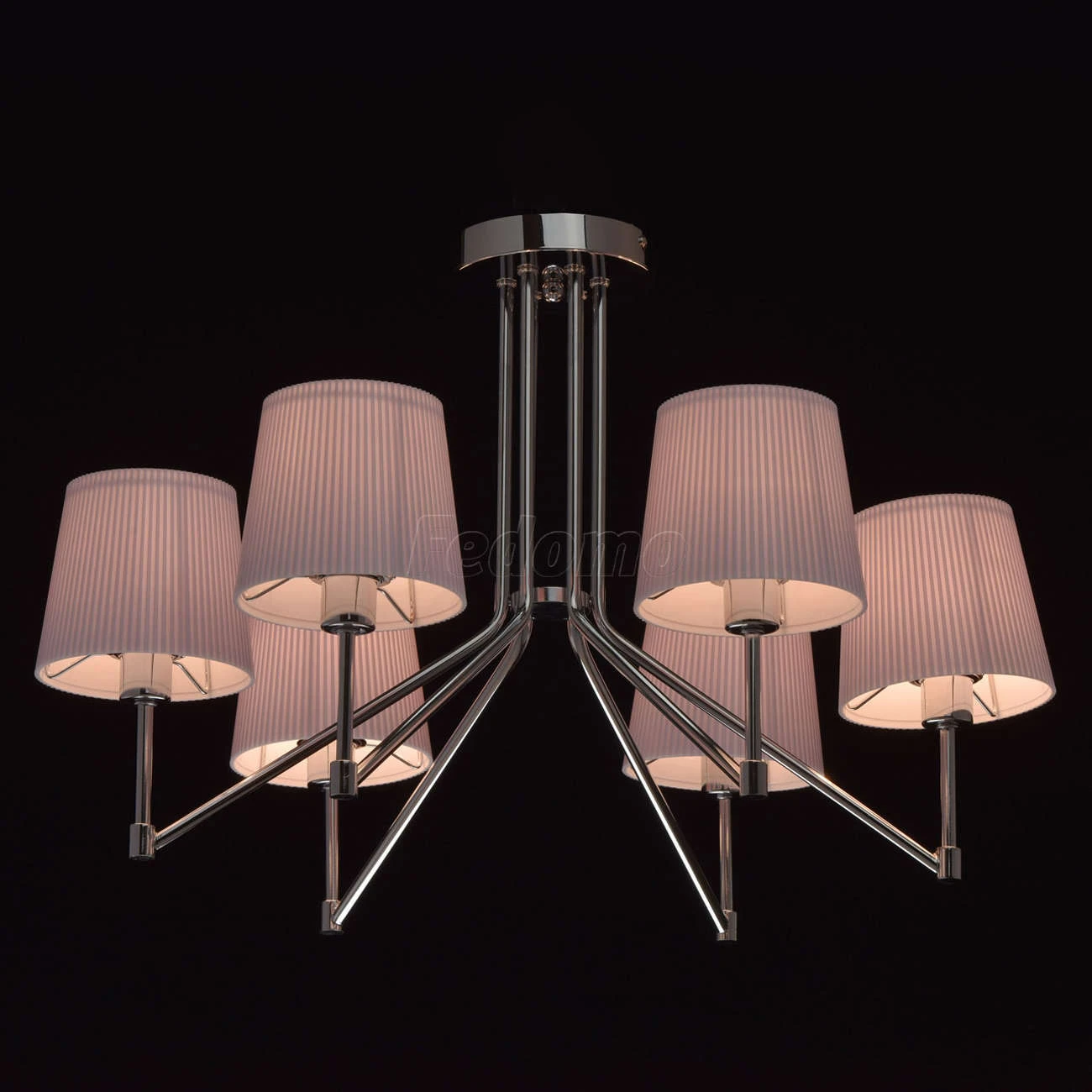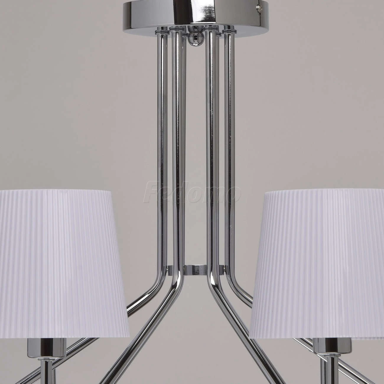 Светлые плафоны с эффектом \хамелеон" в зажжённом режиме приобретают нежный сиреневый оттенок и придают люстре дополнительную романтичность"