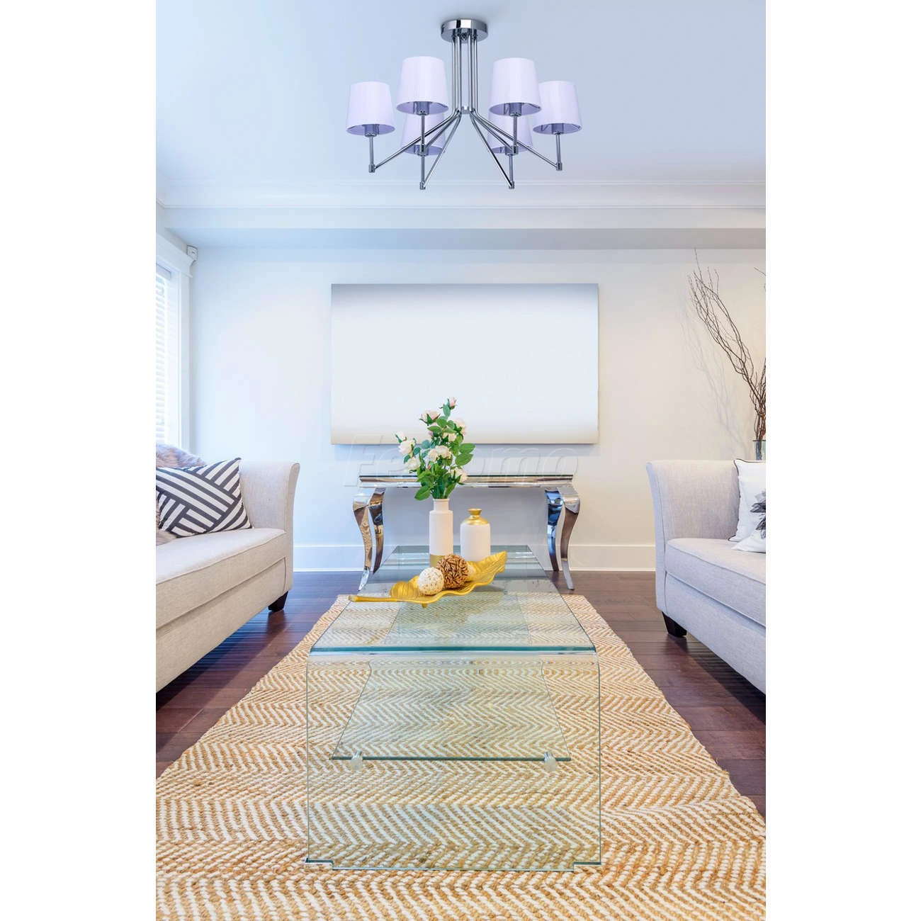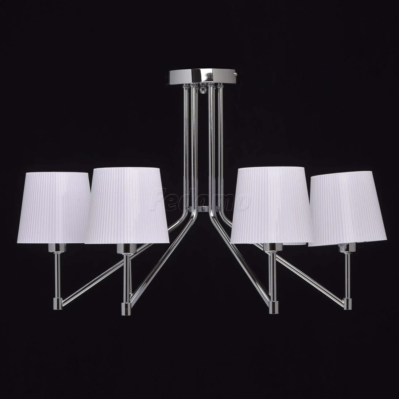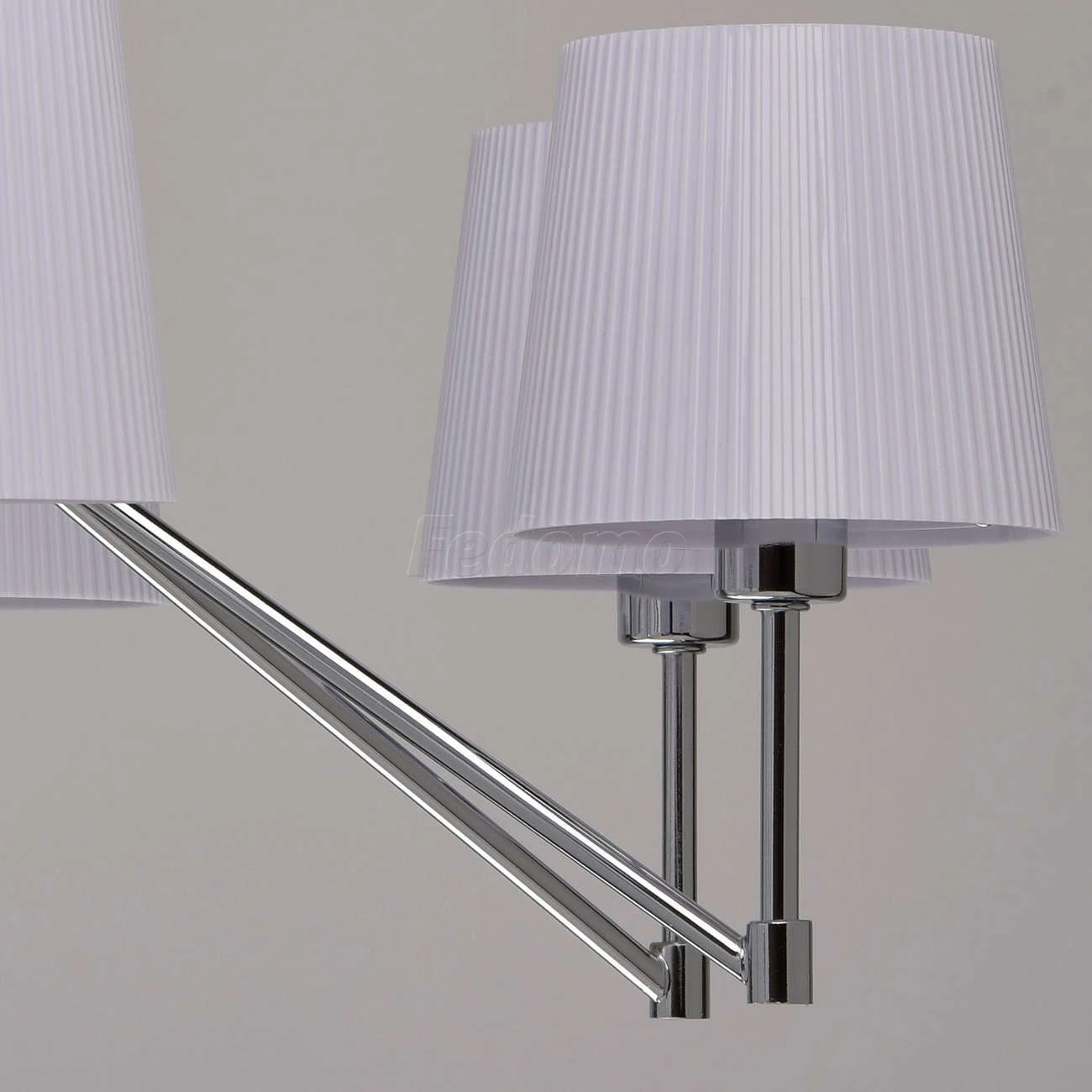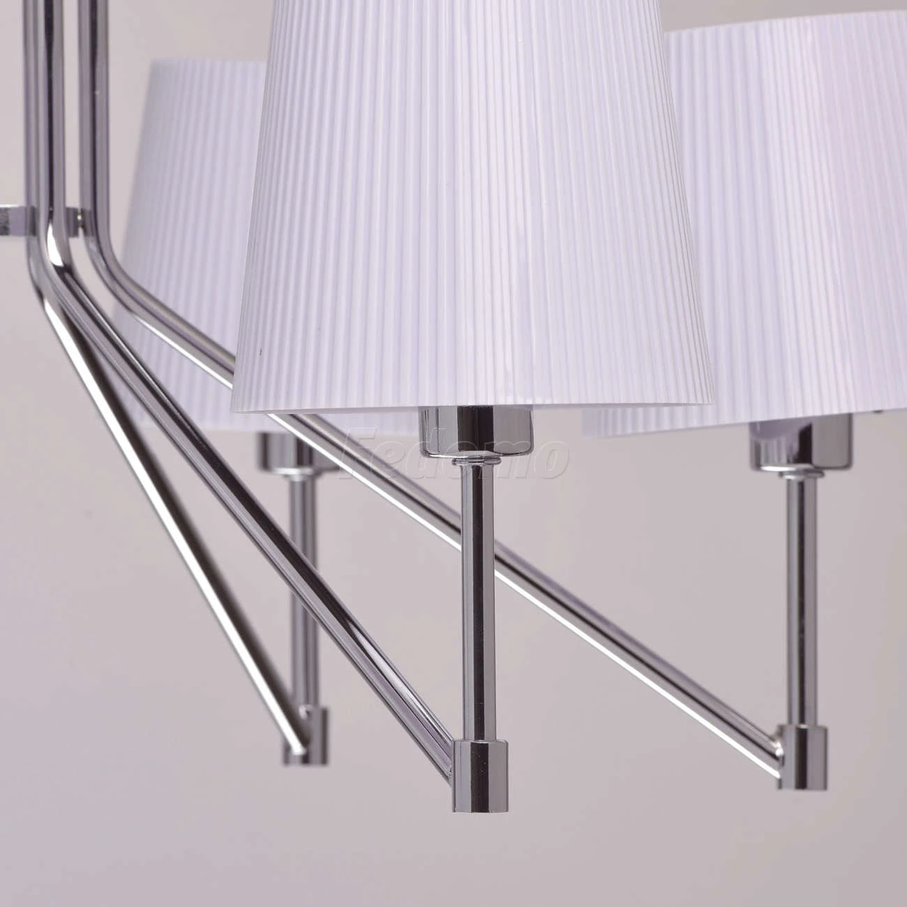 Светлые плафоны с эффектом \хамелеон" в зажжённом режиме приобретают нежный сиреневый оттенок и придают люстре дополнительную романтичность"