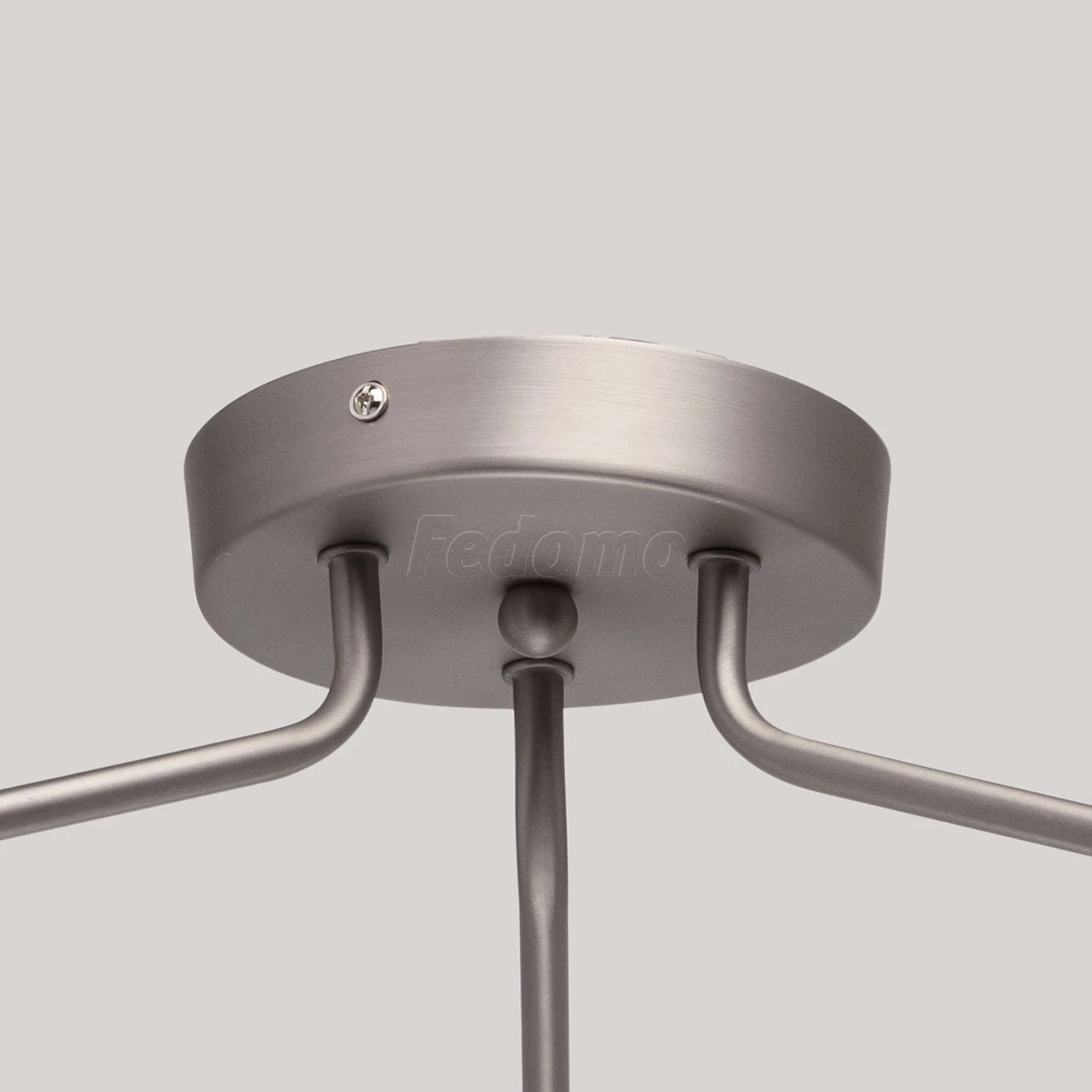 Стильный дизайн люстры из коллекции «Лацио» оценят любители современного гламура. Основание из металла цвета сатинового никеля гармонично смотрится в сочетании с рожками того же оттенка. Каждый рожок дополнен чёрным текстильным подвесом, к которому крепит