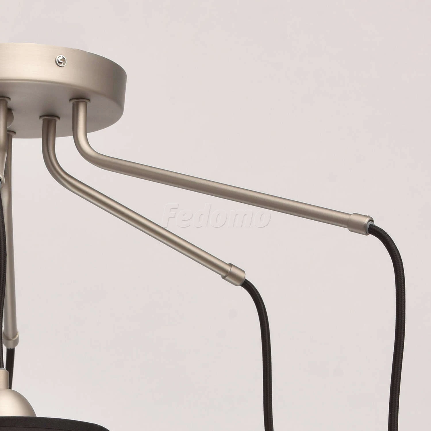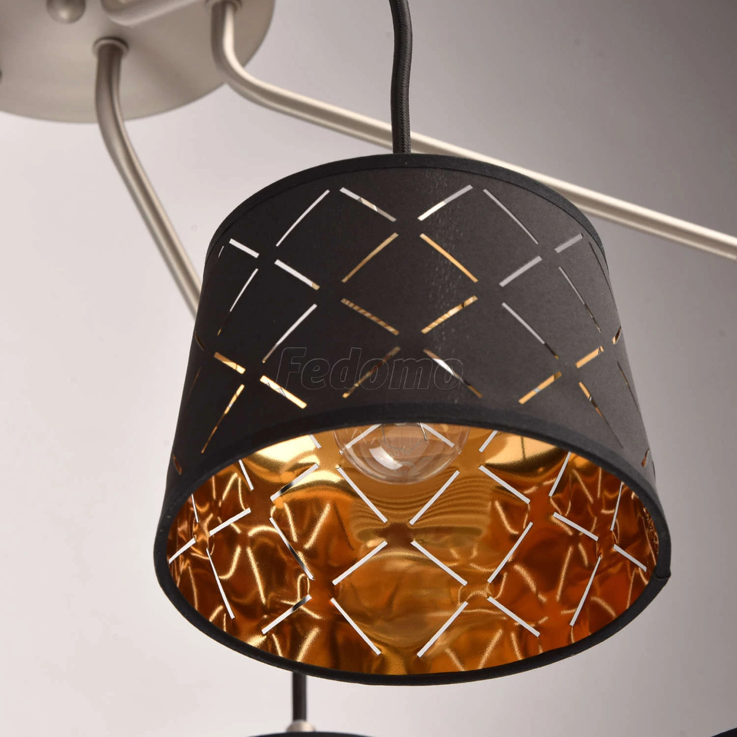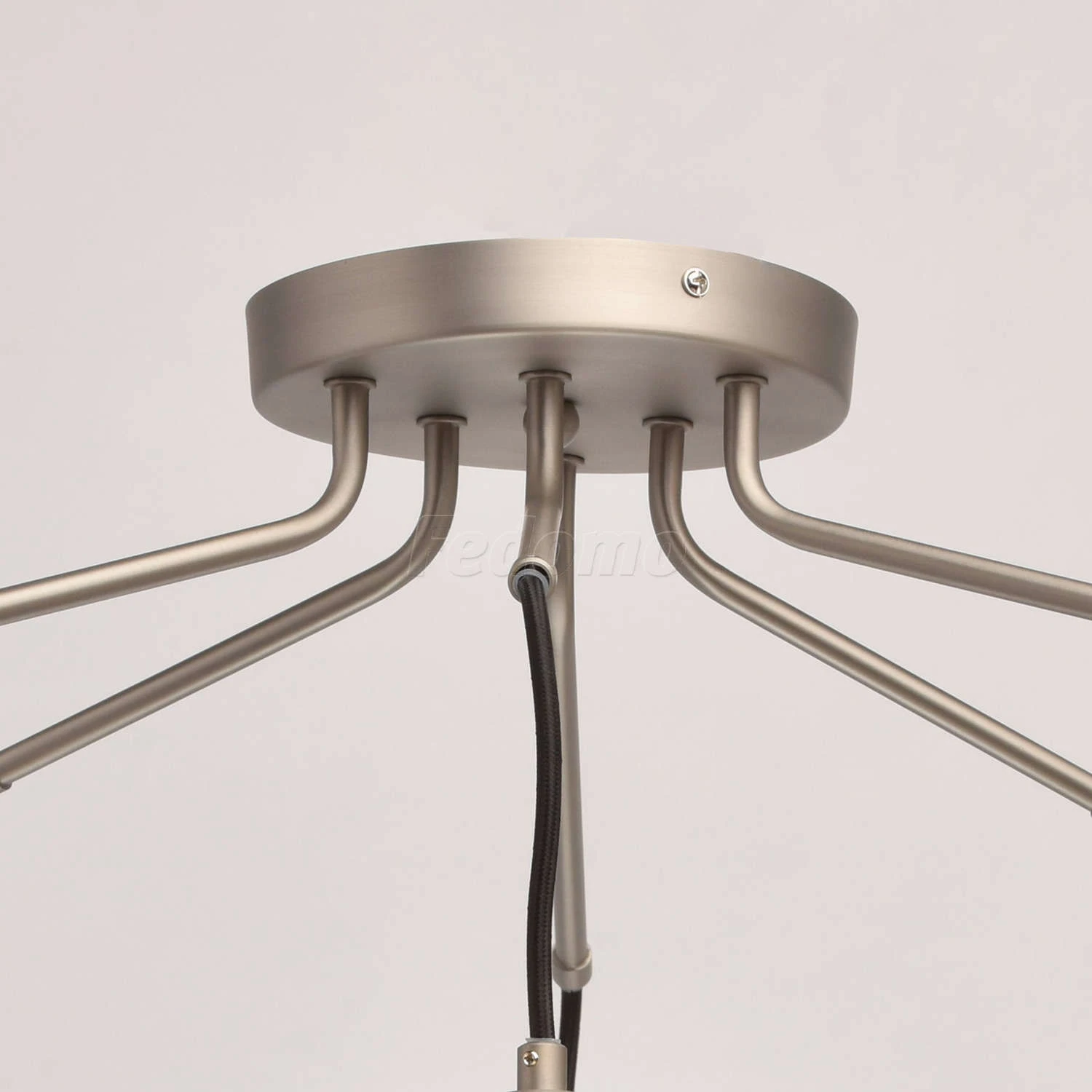 Стильный дизайн люстры из коллекции «Лацио» оценят любители современного гламура. Основание из металла цвета сатинового никеля гармонично смотрится в сочетании с рожками того же оттенка. Каждый рожок дополнен чёрным текстильным подвесом, к которому крепит