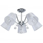 Люстра потолочная 103012305 из серии Лацио от компании De City устанавливается на монтажную пластину. Люстра украшена хрусталем и прекрасно подойдет в качестве источника основного света для гостиной, кухни, кабинета, офиса, оформленных в стиле модерн, арт-деко. Основной цвет модели - белый, материал арматуры - металл. Люстра имеет 5 абажуров со свечением вниз, материал изготовления - матовая ткань. Модель оснащена цоколем E27 (5xE27), имеет 5 лампочек с общей мощностью 300W и напряжением 220V. Светильник имеет цветовую температуру 2700К и поддерживает подключение диммера. Габариты: высота - 340 мм, диаметр - 600 мм. Лампочки в комплект не входят. Лучшая цена и условия доставки на De City 103012305 в интернет-магазине Fedomo.ru.