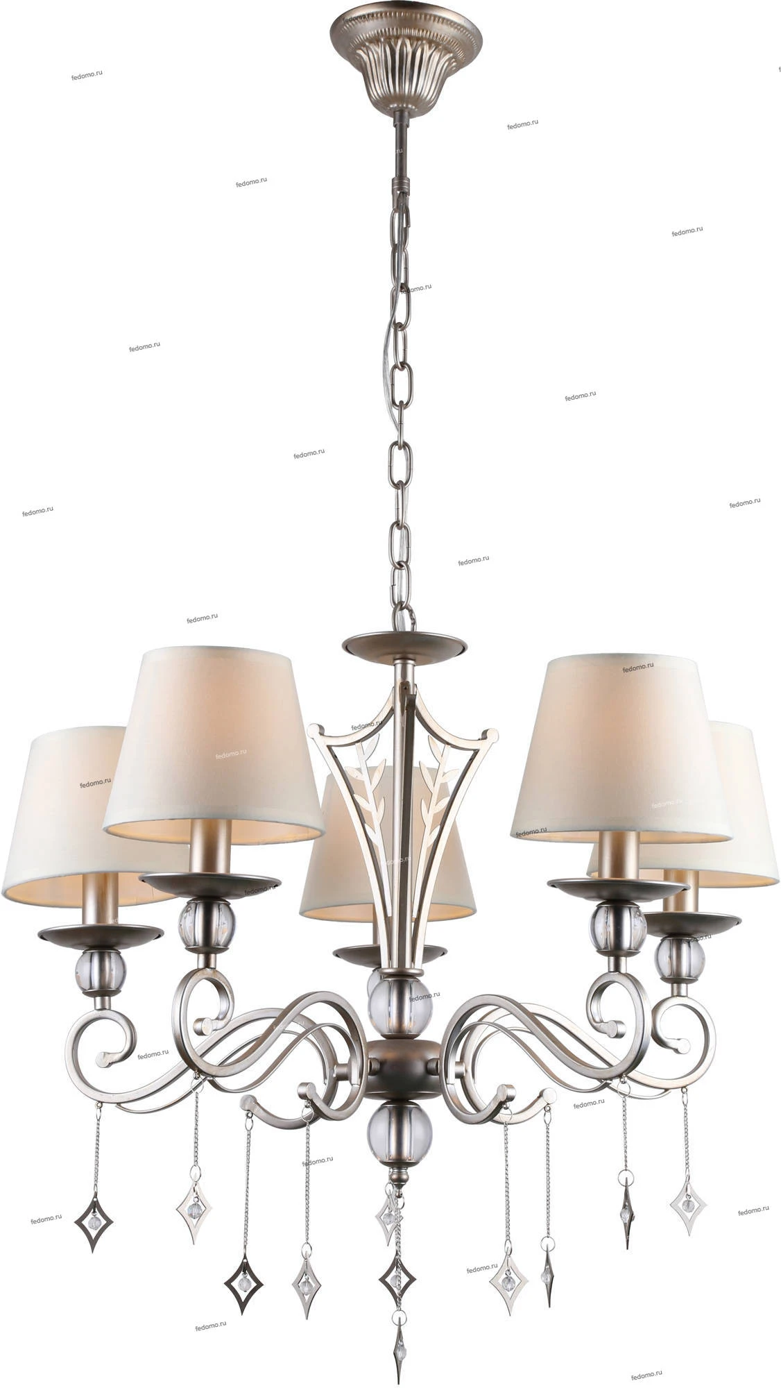 Люстра подвесная 1101/5 из серии Molly от компании J-Light устанавливается на металлический крюк. Классическая люстра украшена хрусталем и прекрасно подойдет в качестве источника основного света для гостиной, прихожей и коридора, кафе, кабинета, оформленных в стиле арт-деко. Основной материал арматуры - металл. Люстра имеет 5 абажуров, материал изготовления - ткань. Модель оснащена цоколем E14 (5xE14), имеет 5 лампочек с общей мощностью 200W и напряжением 220V. Светильник поддерживает подключение диммера. Габариты: длина - 620 мм, ширина - 1020 мм, высота - 620 мм. Лампочки в комплект не входят. Лучшая цена и условия доставки на J-Light 1101/5 в интернет-магазине Fedomo.ru.
