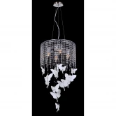 Лампы 4*E27*60W, excluded. высота светильника указана без подвеса Материал и цвет арматуры металл, цвет хром. Плафон прозрачный хрусталь. Цвет хрусталя прозрачный. Декор белая керамика, прозрачный хрусталь.