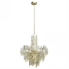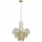 Люстра из коллекции «Монарх» отличается нетривиальным дизайном, который будет эффектно смотреться как в классических интерьерах, так и в современной лофт-обстановке. Основание светильника выполнено из металла матового золотого оттенка и подчеркнуто богаты