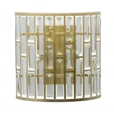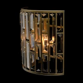 Смелый дизайн бра из коллекции «Монарх» объединяет современную новаторскую композицию и нотки классической роскоши. Металлическое основание матового золотого оттенка создает гармоничный дуэт с оригинальными декоративными элементами из крупного прозрачного