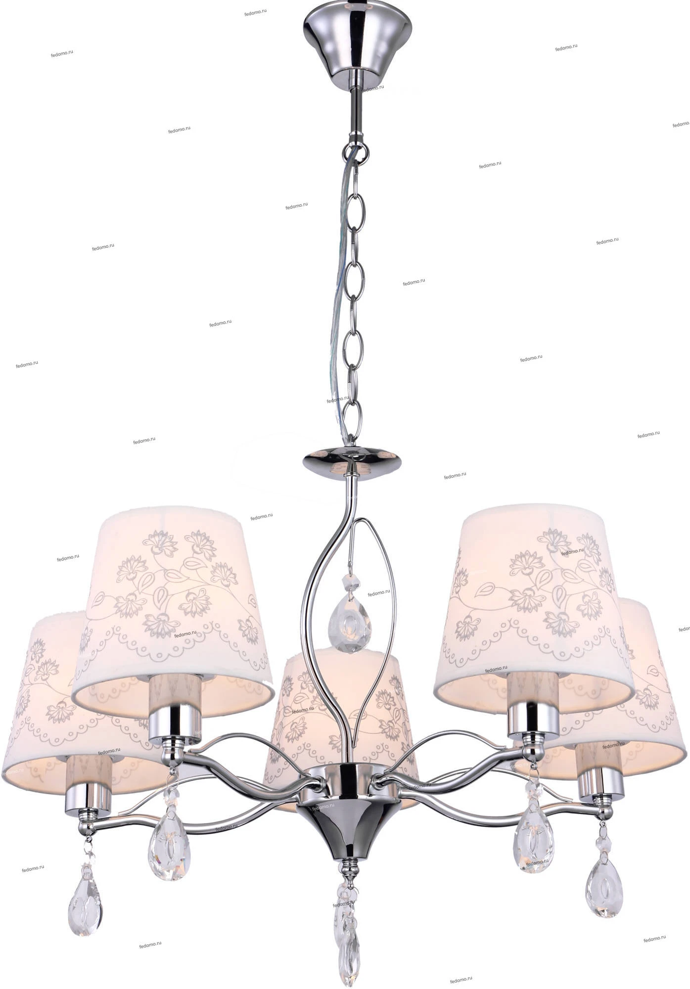 Люстра подвесная 1274/5 из серии Adele от компании J-Light устанавливается на металлический крюк. Классическая люстра с цветами украшена хрусталем и прекрасно подойдет в качестве источника основного света для гостиной, прихожей и коридора, кафе, кабинета, оформленных в стиле прованс. Основной цвет модели - белый, материал арматуры - металл. Люстра имеет 5 абажуров, материал изготовления - ткань. Модель оснащена цоколем E14 (5xE14), имеет 5 лампочек с общей мощностью 200W и напряжением 220V. Светильник поддерживает подключение диммера. Габариты: длина - 570 мм, ширина - 830 мм, высота - 570 мм. Лампочки в комплект не входят. Лучшая цена и условия доставки на J-Light 1274/5 в интернет-магазине Fedomo.ru.