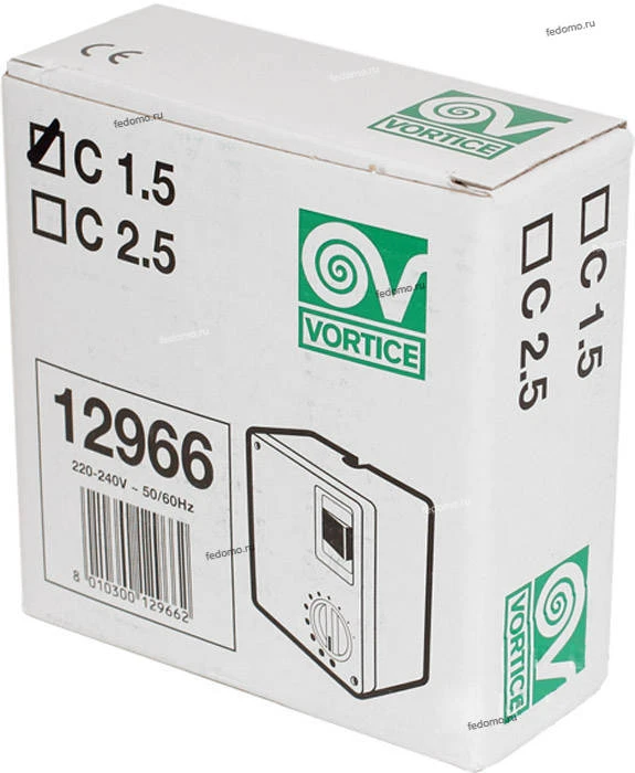 Вентиляторы потолочные12966VRT — Настенный регулятор скорости вращения лопастей нереверсивных вентиляторов Vortice, белый с черным и красным, 200W, IP20