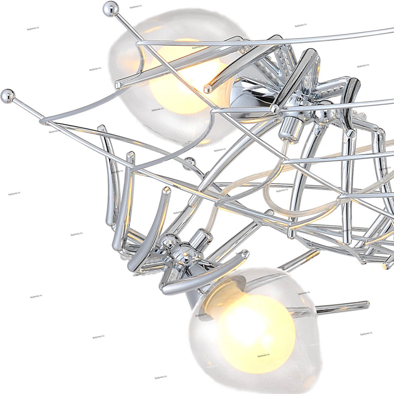 Используемые материалы арматуры - металл гальванизированный, плафона - стекло. Цвет базы - хром, плафон - прозрачный. Диаметр потолочной чашки 10 см. Особенность: раздельное включение.