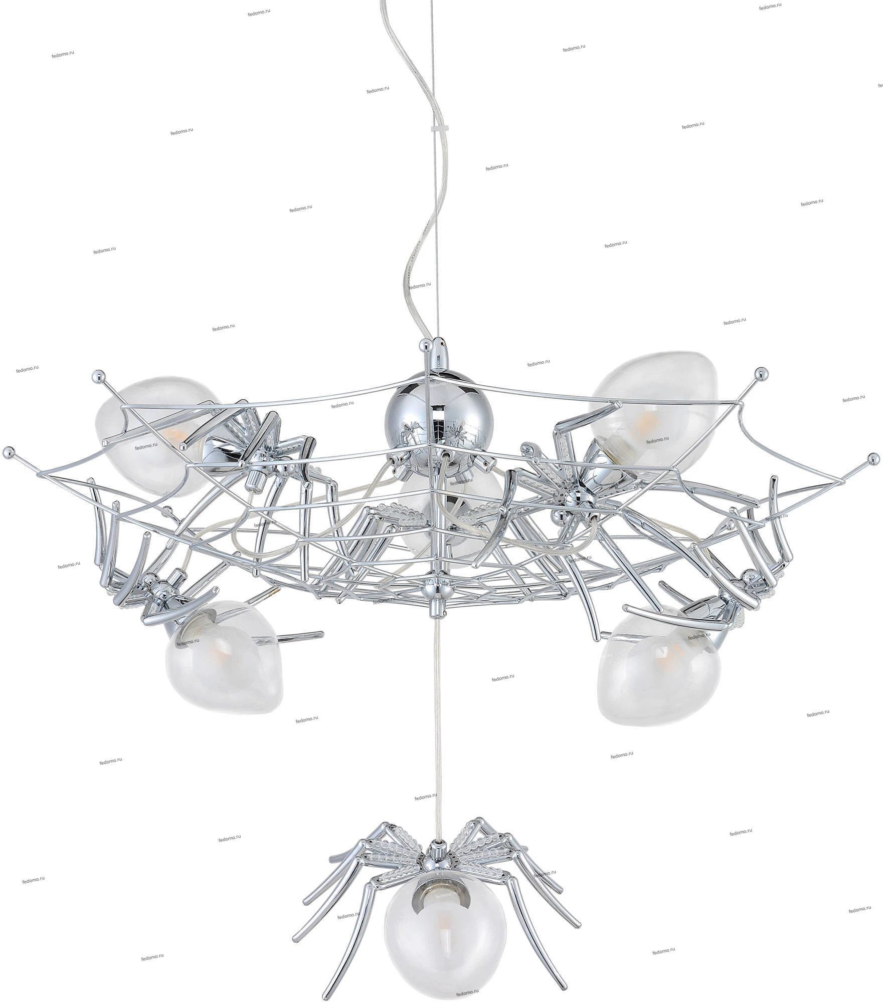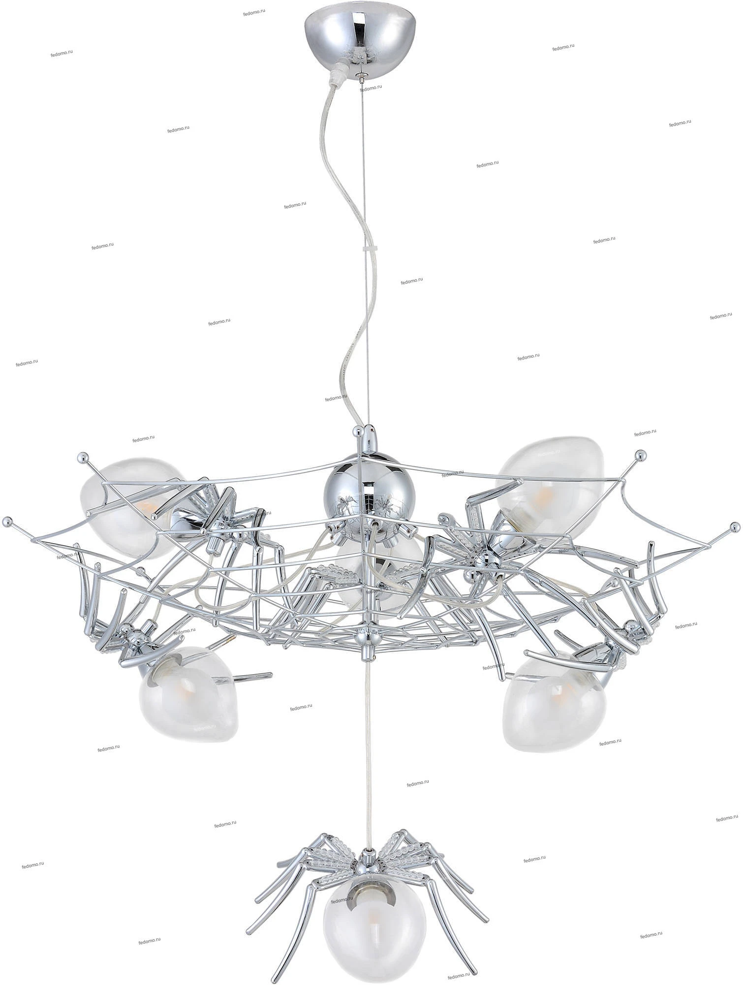 Люстра подвесная 1308/02 SP-6 из серии Ragno от компании Divinare устанавливается на монтажную пластину. Современная люстра с пауками прекрасно подойдет в качестве источника основного света для гостиной, прихожей и коридора, кафе, холла, кабинета, оформленных в стиле техно, лофт. Основной цвет модели - хром, материал арматуры - металл. Люстра имеет 6 плафонов со свечением вверх и вниз, материал изготовления - стекло, металл. Модель оснащена цоколем G9 (6xG9), имеет 6 лампочек с общей мощностью 240W и напряжением 220V. Светильник поддерживает подключение диммера. Габариты: высота - 430 мм, диаметр - 650 мм, длина подвеса - 550 мм. Лампочки в комплект не входят. Лучшая цена и условия доставки на Divinare 1308/02 SP-6 в интернет-магазине Fedomo.ru.