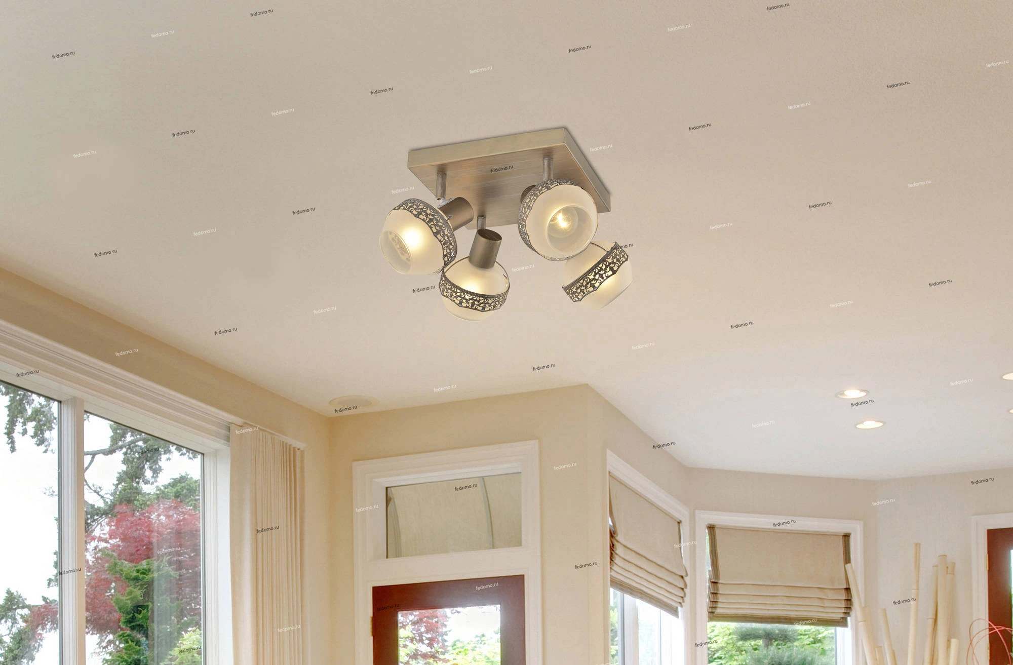Спот 1325/4AC из серии Lara от компании J-Light удачно впишется в интерьер прихожей и коридора, кафе, спальни, кухни, экспозиции, оформленных в стиле модерн. Спот с цветами и лепестками имеет 4 плафона и 4 лампочки с цоколем E14 с мощностью 40W, напряжением 220V. Модель поддерживает подключение диммера. Светильник устанавливается на монтажную пластину. Основной материал арматуры - металл, материал плафона - стекло. Лампочки в комплект не входят. Габариты модели: длина - 220 мм, ширина - 150 мм, высота - 220 мм. Лучшая цена и условия доставки на J-Light 1325/4AC в интернет-магазине Fedomo.ru.