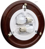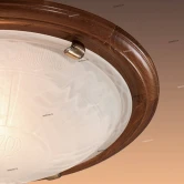 Материалы исполнения База - металл. Плафон - декорированное стекло. Цвет арматуры бронзовый. Плафон в цвете: коричневый. Особенность: центробежное стекло с рисунком. Декор рамка, материал декора дерево, цвет коричневый. Наименование 136/K SN 101 св-к LUFE WOOD стекло E27 2*60Вт D360.
