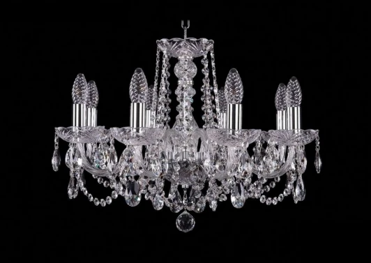 Люстра подвесная хрустальная 1402/8/195/Ni из серии 1402 от компании Bohemia устанавливается на металлический крюк. Классическая люстра в виде подсвечника украшена хрусталем и прекрасно подойдет в качестве источника основного света для гостиной, прихожей и коридора, кафе, кабинета, оформленных в стиле барокко. Основной цвет модели - прозрачный, материал арматуры - металл. Модель оснащена цоколем E14 (8хE14), имеет 8 лампочек с общей мощностью 320W и напряжением 220V. Светильник поддерживает подключение диммера. Габариты: высота - 410 мм, диаметр - 580 мм. Лампочки в комплект не входят. Лучшая цена и условия доставки на Bohemia 1402/8/195/Ni в интернет-магазине Fedomo.ru.
