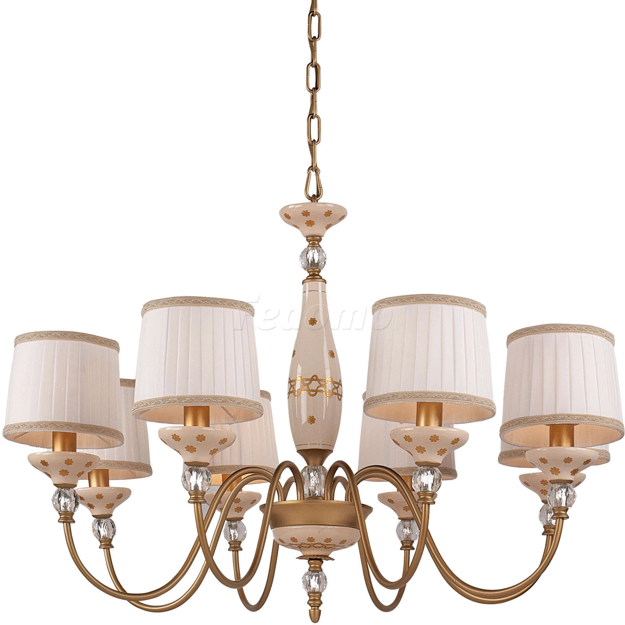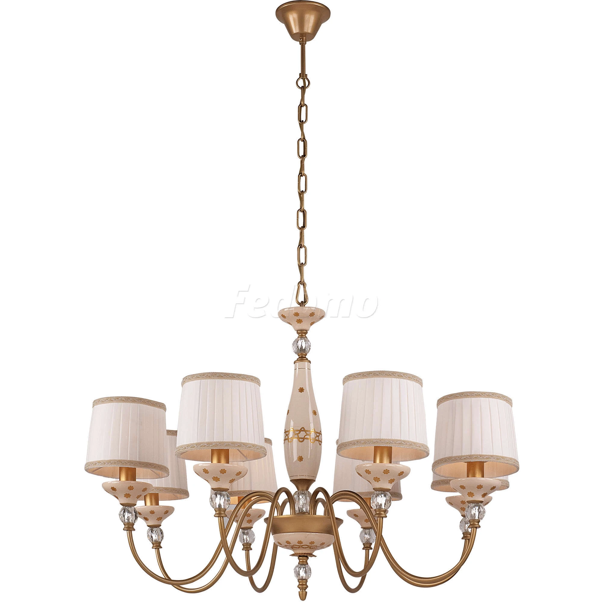 Люстра подвесная 1413-8P из серии Мarquise от компании Favourite регулируется по высоте и устанавливается на металлический крюк. Классическая люстра прекрасно подойдет в качестве источника основного света для гостиной, прихожей и коридора, кафе, кабинета. Основной цвет модели - белый, материал арматуры - металл, керамика. Люстра имеет 8 абажуров со свечением вверх, материал изготовления - ткань. Модель оснащена цоколем E14 (8хE14), имеет 8 лампочек с общей мощностью 320W и напряжением 220V. Светильник поддерживает подключение диммера. Габариты: высота - 1100 мм, диаметр - 840 мм. Лампочки в комплект не входят. Лучшая цена и условия доставки на Favourite 1413-8P в интернет-магазине Fedomo.ru.