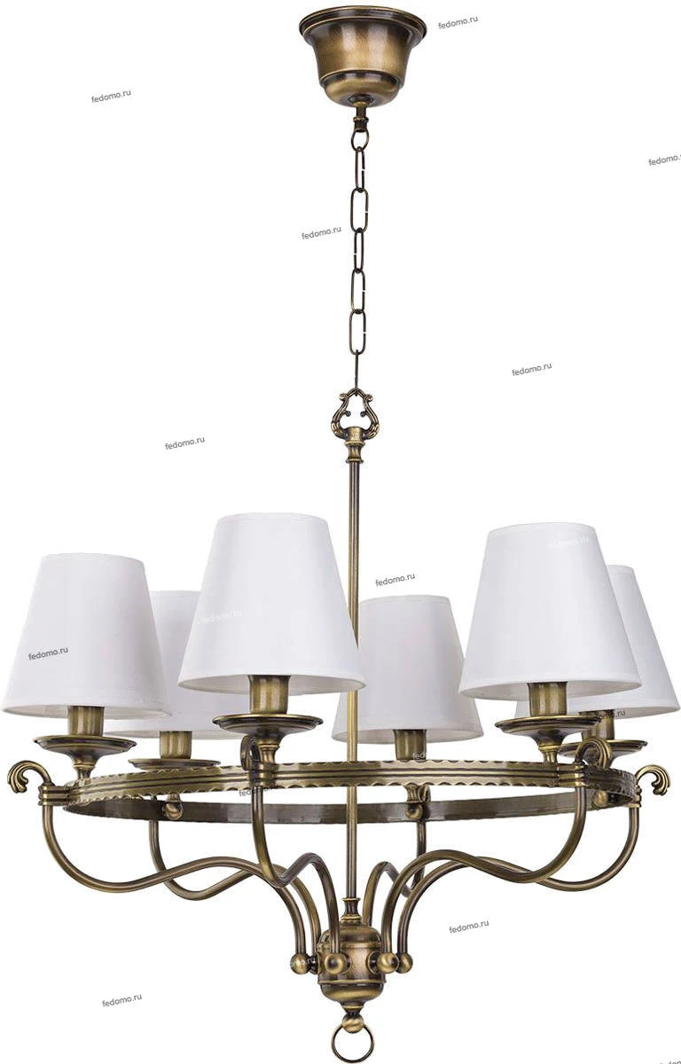 Люстра подвесная 1436 BR 6 P из серии Bristol от компании Jupiter устанавливается на металлический крюк. Классическая люстра прекрасно подойдет в качестве источника основного света для гостиной, прихожей и коридора, кафе, кабинета, оформленных в стиле замковый. Основной цвет модели - белый, материал арматуры - металл. Люстра имеет 5 абажуров со свечением вверх, материал изготовления - матовая ткань. Модель оснащена цоколем E14 (5xE14), имеет 5 лампочек с общей мощностью 200W и напряжением 220V. Светильник поддерживает подключение диммера. Габариты: высота - 900 мм, диаметр - 640 мм. Лампочки в комплект не входят. Лучшая цена и условия доставки на Jupiter 1436 BR 6 P в интернет-магазине Fedomo.ru.